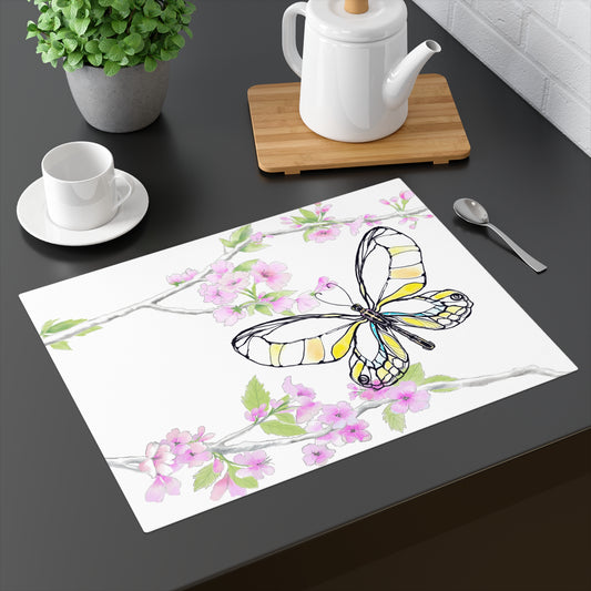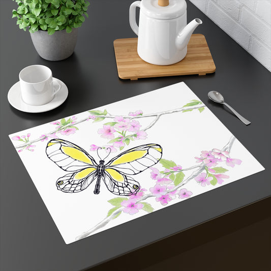 Butterfly Blossom Romp Cotton Twill Placemat, 1pc Yellow Butterfly #10 Left side of the table