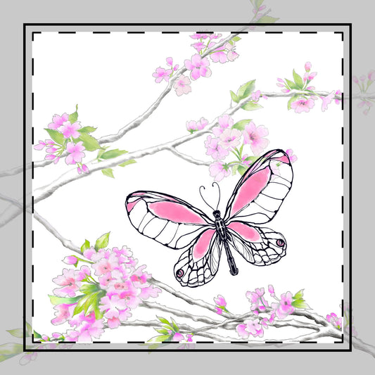 Butterfly Blossom Romp Cotton Twill Napkin , pink, Fabric Background Creamy White, #4