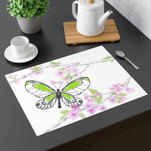 Butterfly Blossom Romp Cotton Twill Placemat, 1pc .Medium Green #7 Left side of table