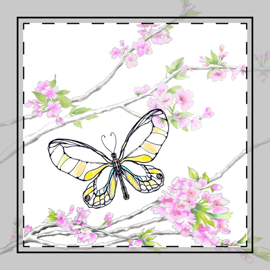Butterfly Blossom Romp Cotton Twill Napkin ,Yellow, Fabric Background Creamy White, #10