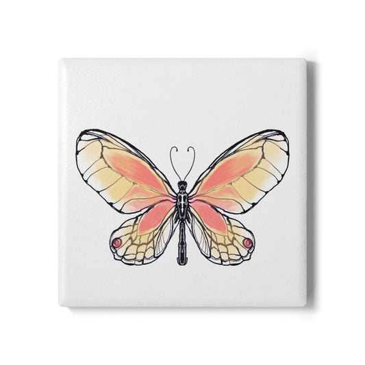 Butterfly Blossom Romp Ceramic Coaster, Yellow Orange
