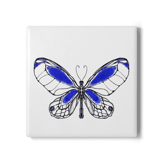 Butterfly Blossom Romp Ceramic Coaster, Navy Blue