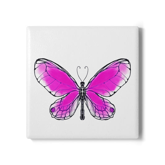 Butterfly Blossom Romp Ceramic Coaster, Raspberry
