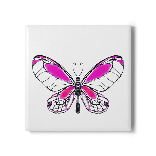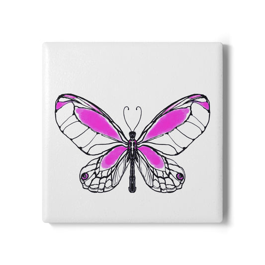 Butterfly Blossom Romp Ceramic Coaster, Pink