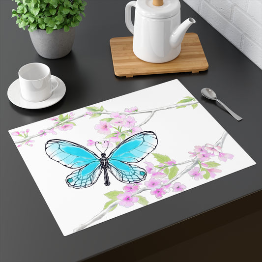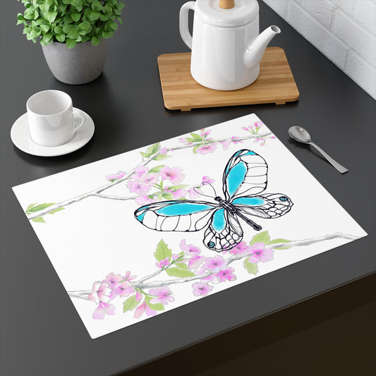 Butterfly Blossom Romp Cotton Twill Placemat, 1pc Aqua #1 Head of the table