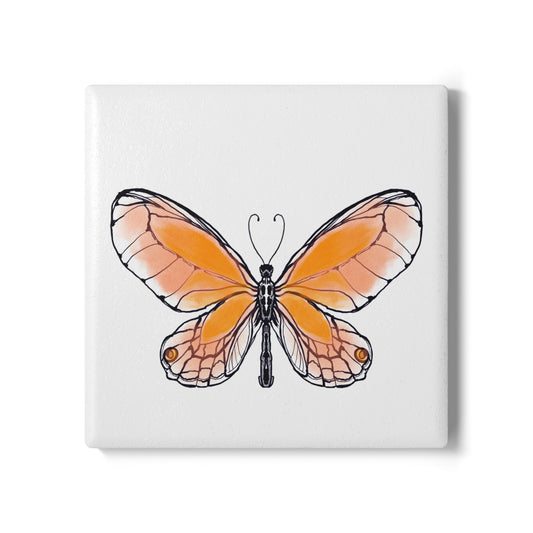 Butterfly Blossom Romp Ceramic Coaster, Orange
