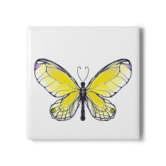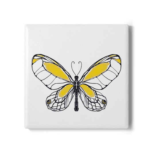 Butterfly Blossom Romp Ceramic Coaster, Yellow