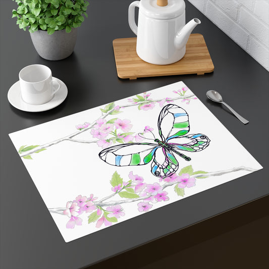 Butterfly Blossom Romp Cotton Twill Placemat, 1pc Green #8 Left side of table