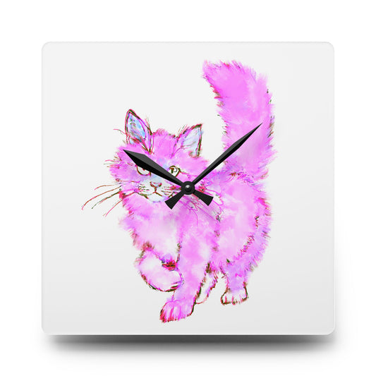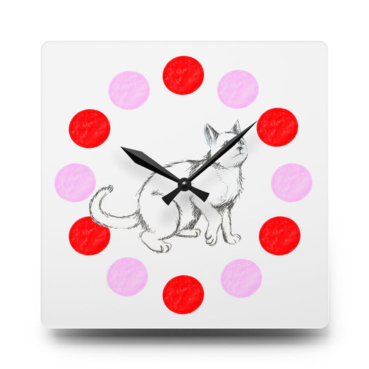 Kitchen & Dining, Office Kitty Fun Acrylic Wall Clock, Pink and Red polka dots tulip