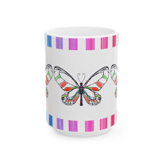 Mugs Butterfly Rainbow Stripe Ceramic Mug in Blue, Pink, and Green