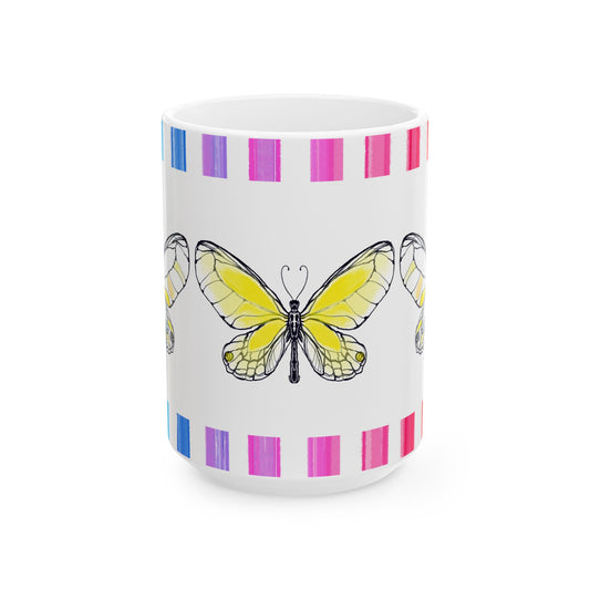 Mugs Butterfly Rainbow Stripe Ceramic Mug in Yellow