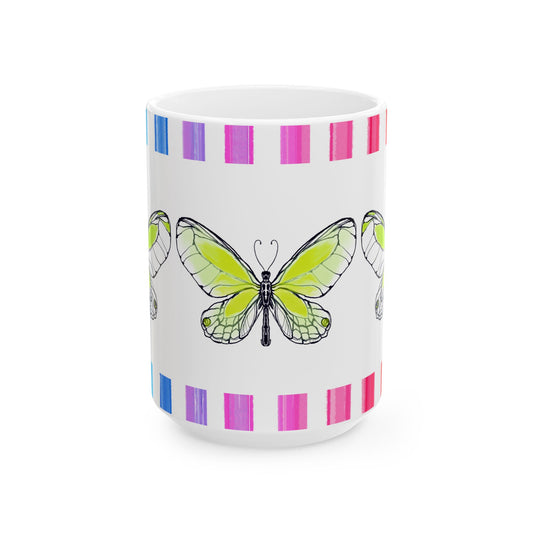 Mugs Butterfly Rainbow Stripe Ceramic Mug in Lime