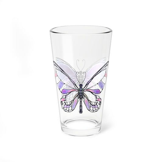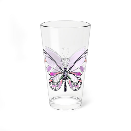 Pint Glass, 16oz Watercolor Stripes & Butterflies