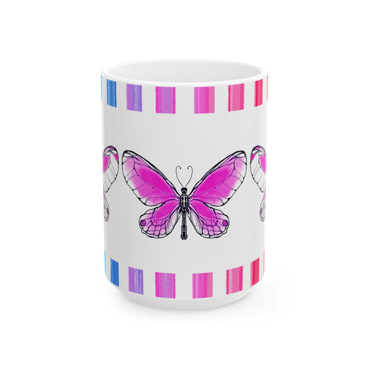 Mugs Butterfly Rainbow Stripe Ceramic Mug in Raspberry Pink