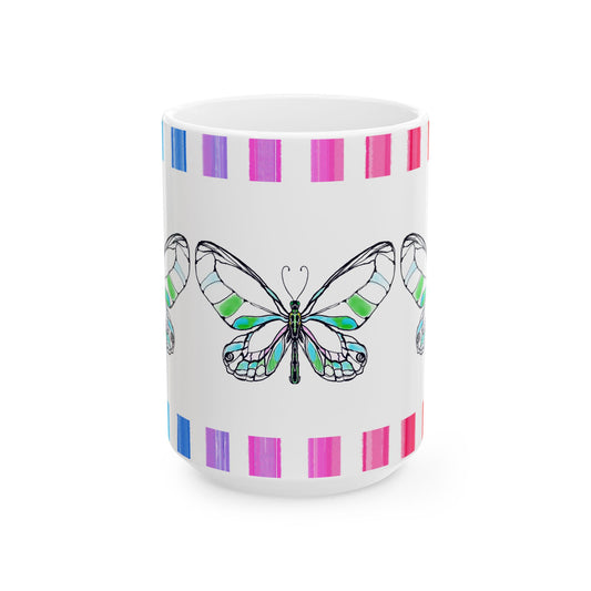 Mugs Butterfly Rainbow Stripe Ceramic Mug in Green