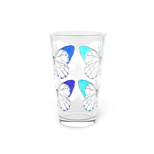 Pint Glass, Rainbow Buttterfly Aqua Blue Periwinkle Blue