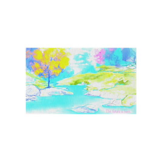 Inspirational Landscapes Indoor/Outdoor Area Rug,"The future is here", Blue, Aqua, and Yellow