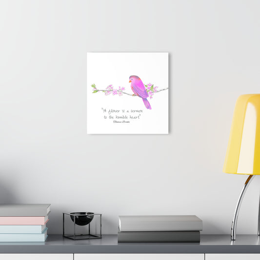 Wall Art Jolly Birds Acrylic Prints (French Cleat Hanging) Pink "A flower is a sermon..."