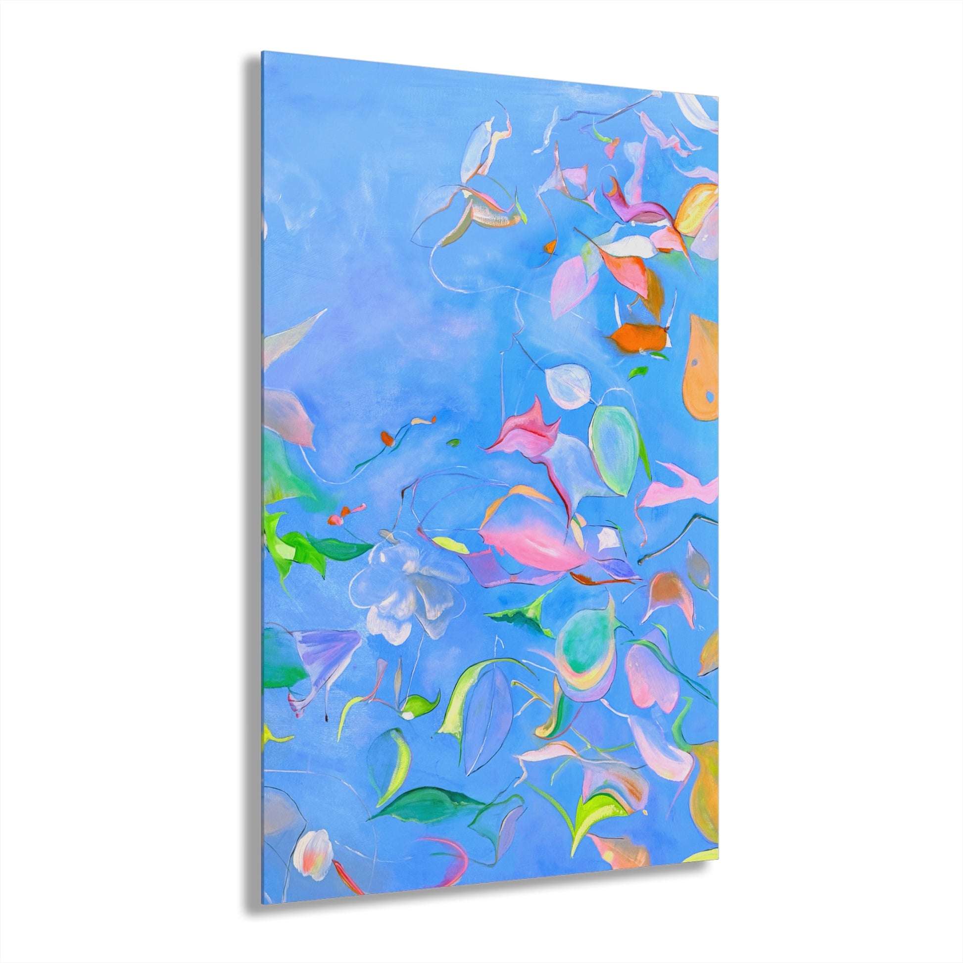 Step into a serene, whimsical sky with Dreamy Leaves, a captivating abstract painting by Laurie Hoagland for Periwinkle’s Design. Soft, light blue stretches across the canvas like a calm spring sky, while colorful leaves drift gently downward, as if carried on a playful breeze. Each leaf seems to dance in slow motion, inviting you to pause, dream, and let your imagination float among the colors.