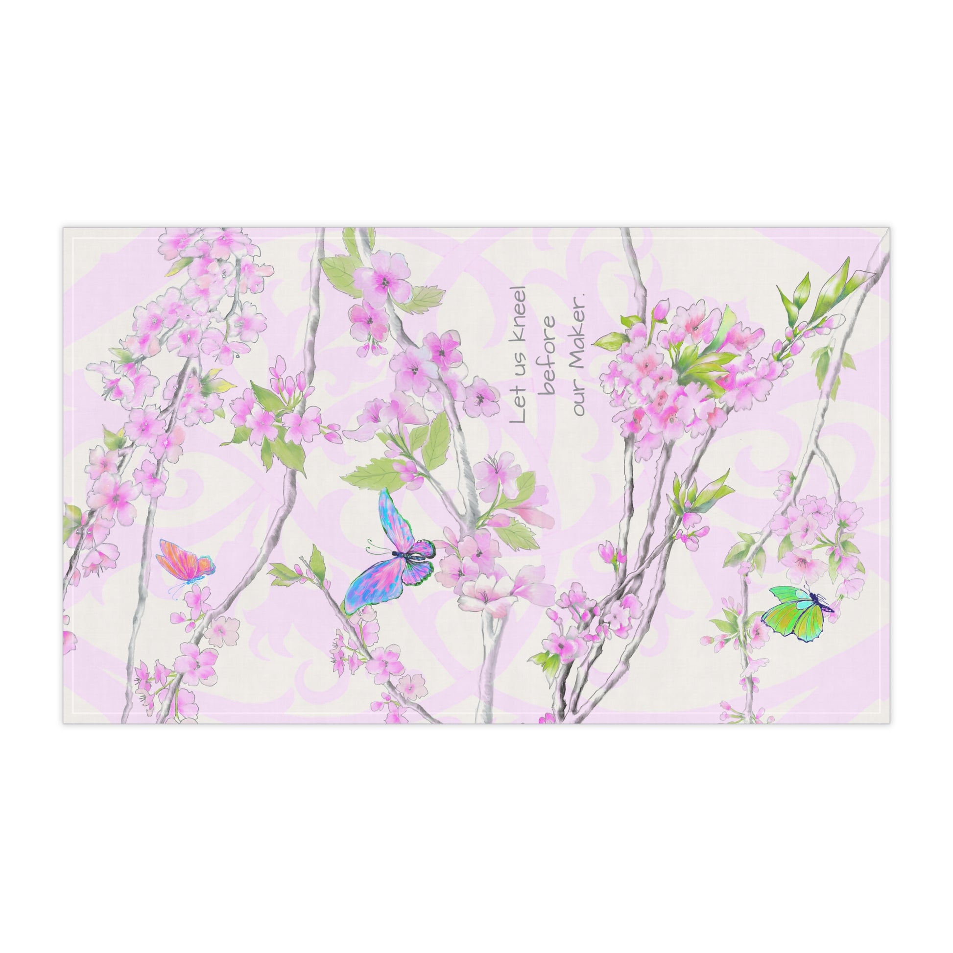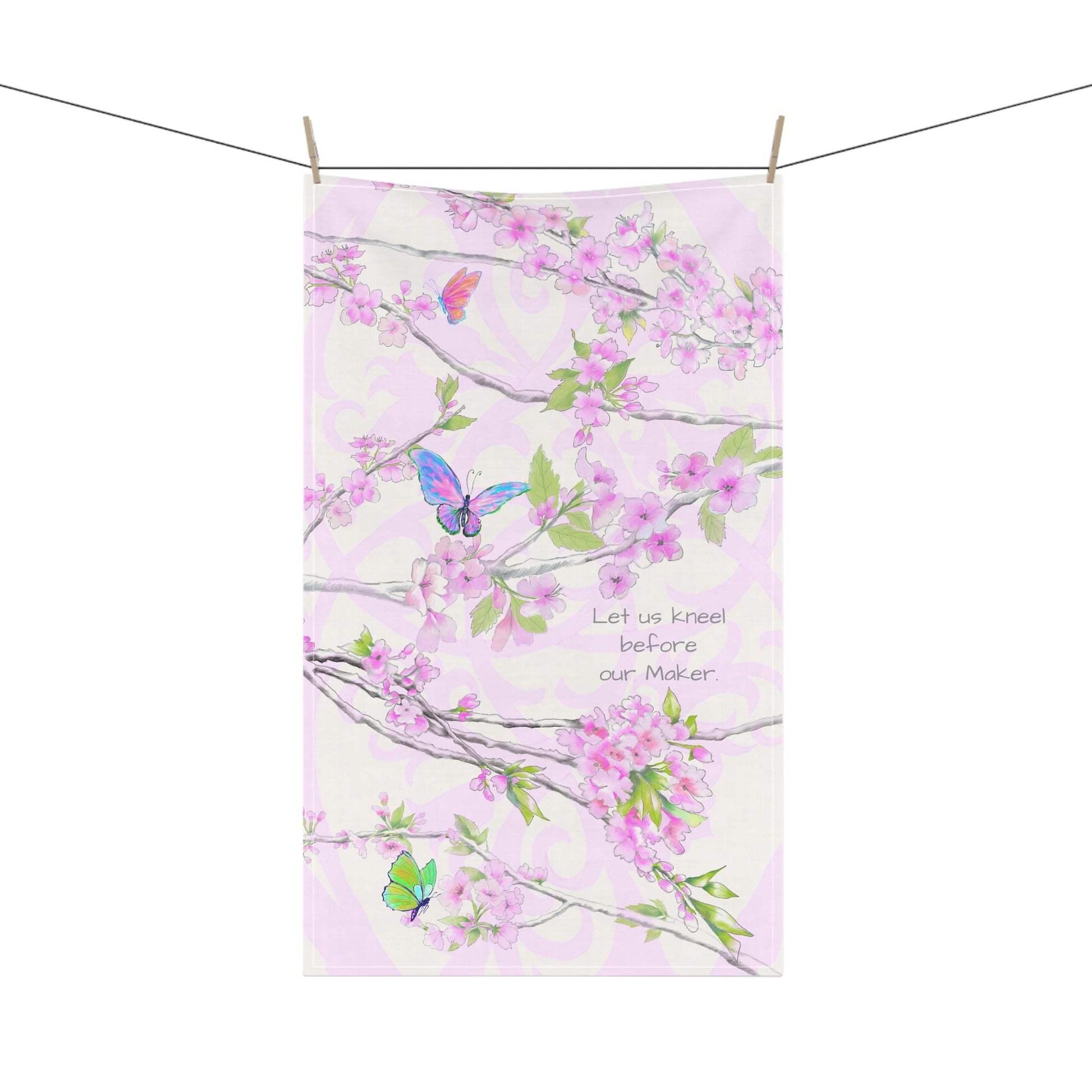 The God who made the butterflies, the blooming trees, and all of creation is the same loving Creator who made us. This cherry blossom-adorned kitchen towel is a beautiful reminder to pause, reflect, and worship our Maker—the One who formed all things by His power and for His glory.