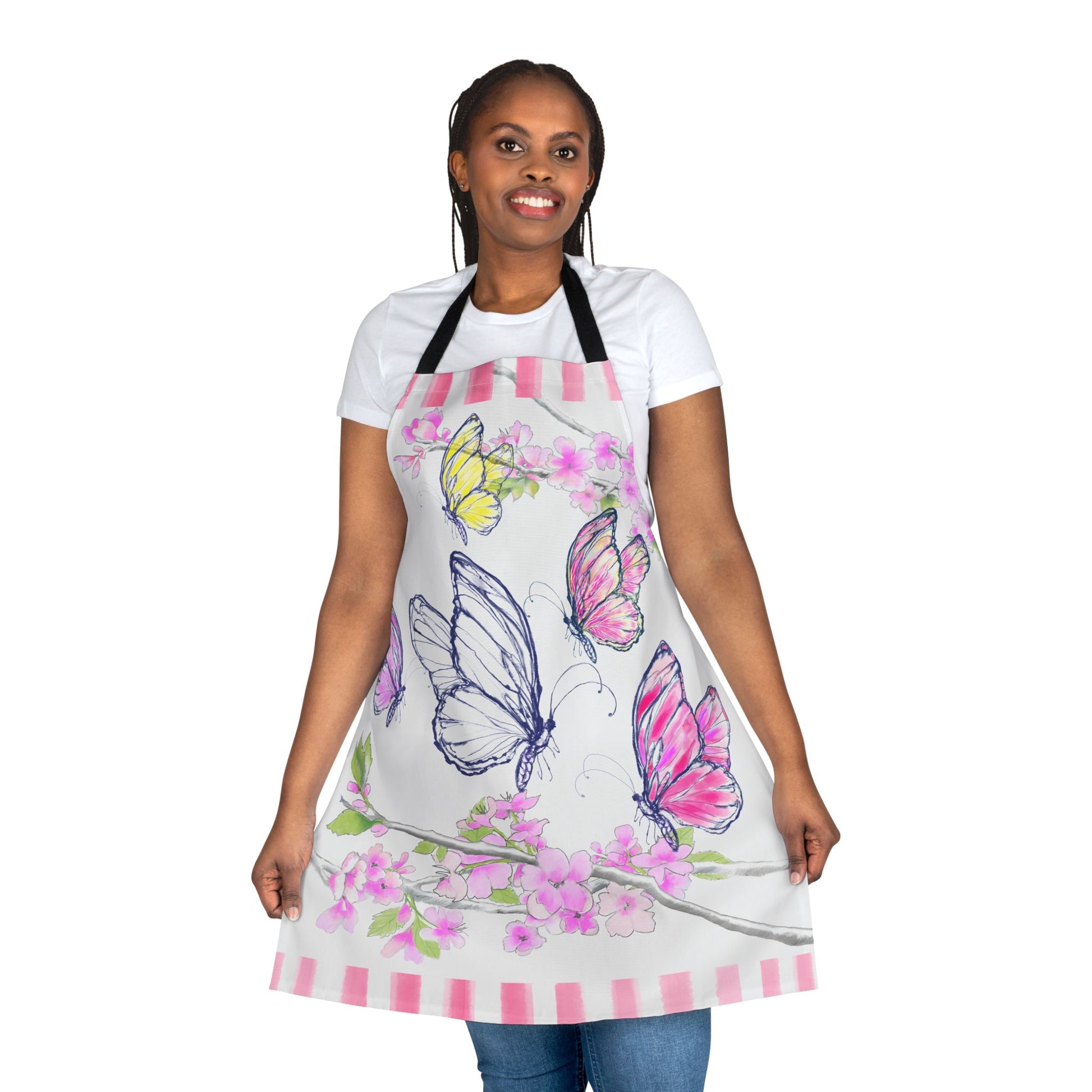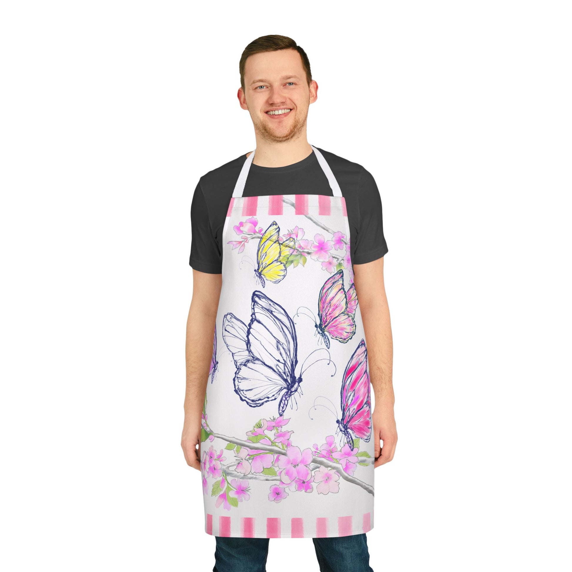 Let your kitchen come alive with the whimsy and movement of butterflies in bloom! The “Blossom Whirl” apron from Periwinkles Design features a stunning, hand-drawn display of colorful butterflies—turning everyday cooking into an expression of joyful creativity.