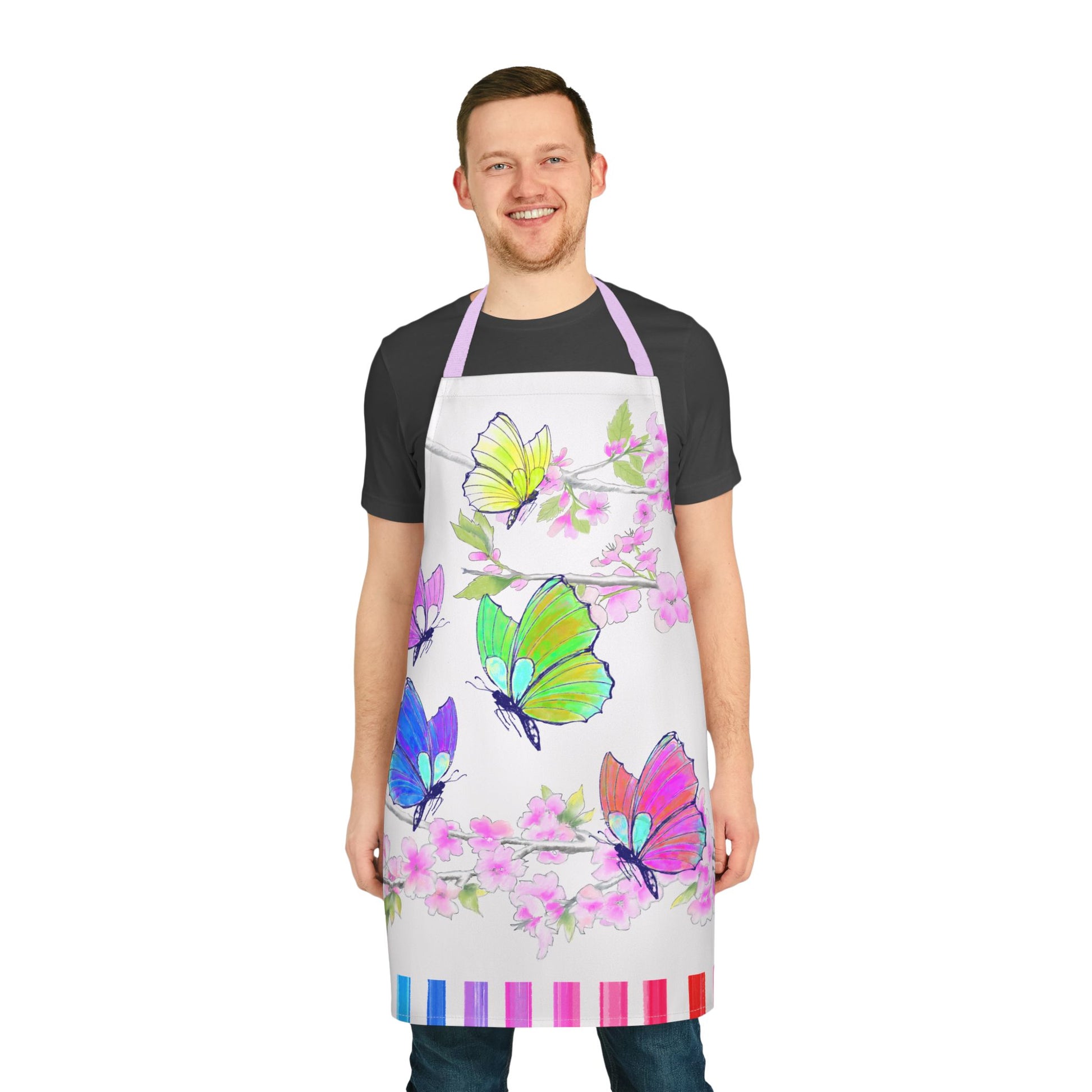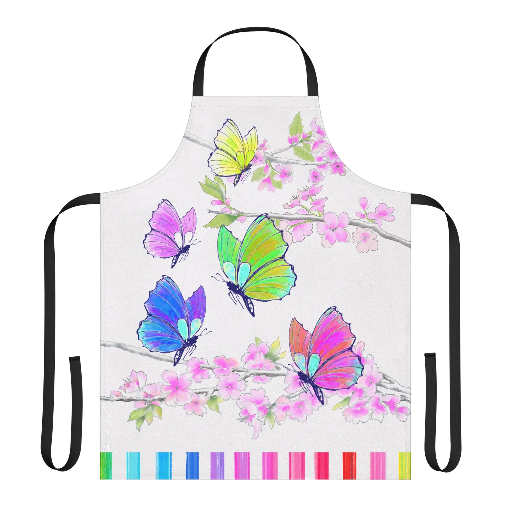 Let your kitchen come alive with the whimsy and movement of butterflies in bloom! The “Blossom Whirl” apron from Periwinkles Design features a stunning, hand-drawn display of colorful butterflies—turning everyday cooking into an expression of joyful creativity.