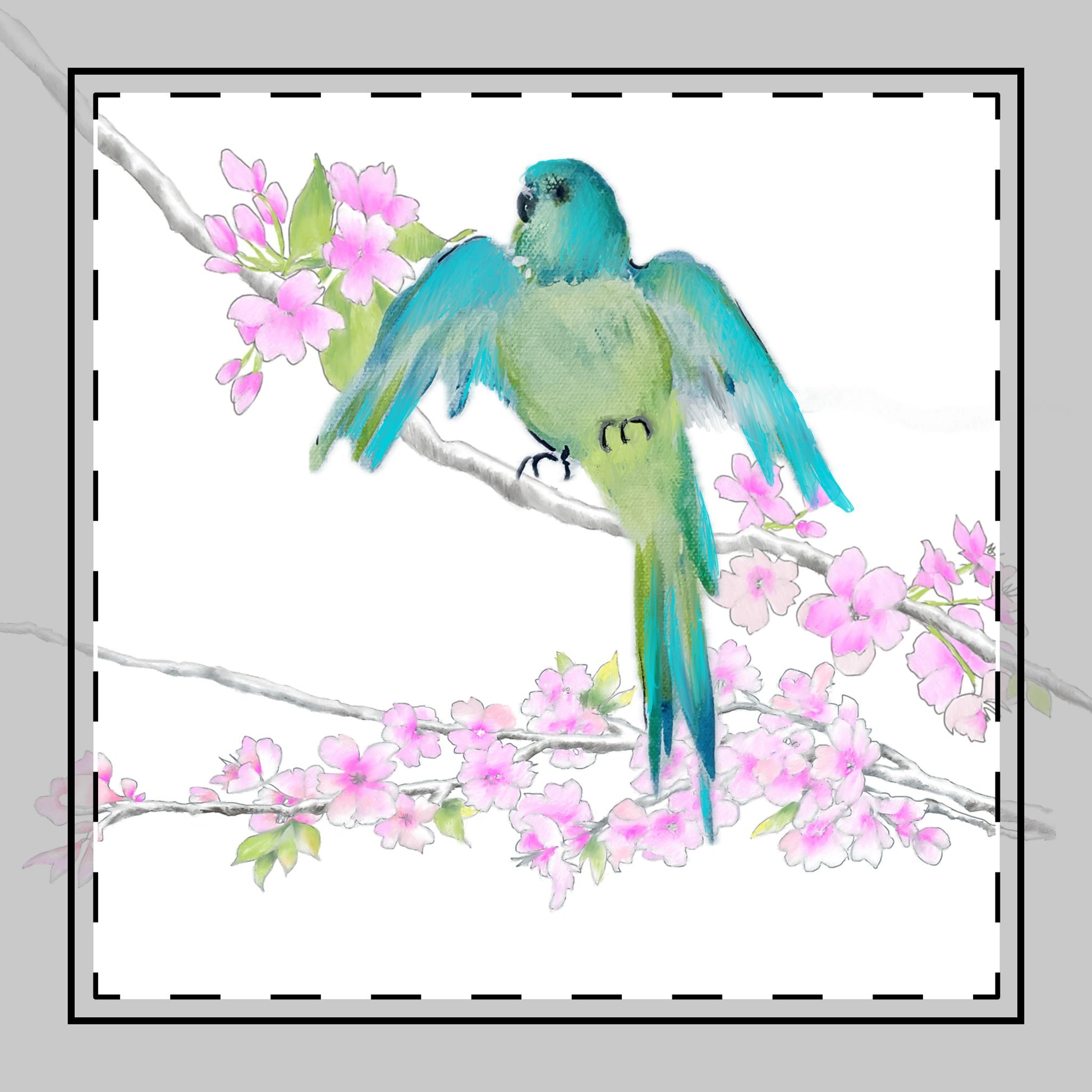 🎨 Hand-Drawn Botanical Beauty – A stunning design inspired by cherry blossoms and birds in song, created by local artists.