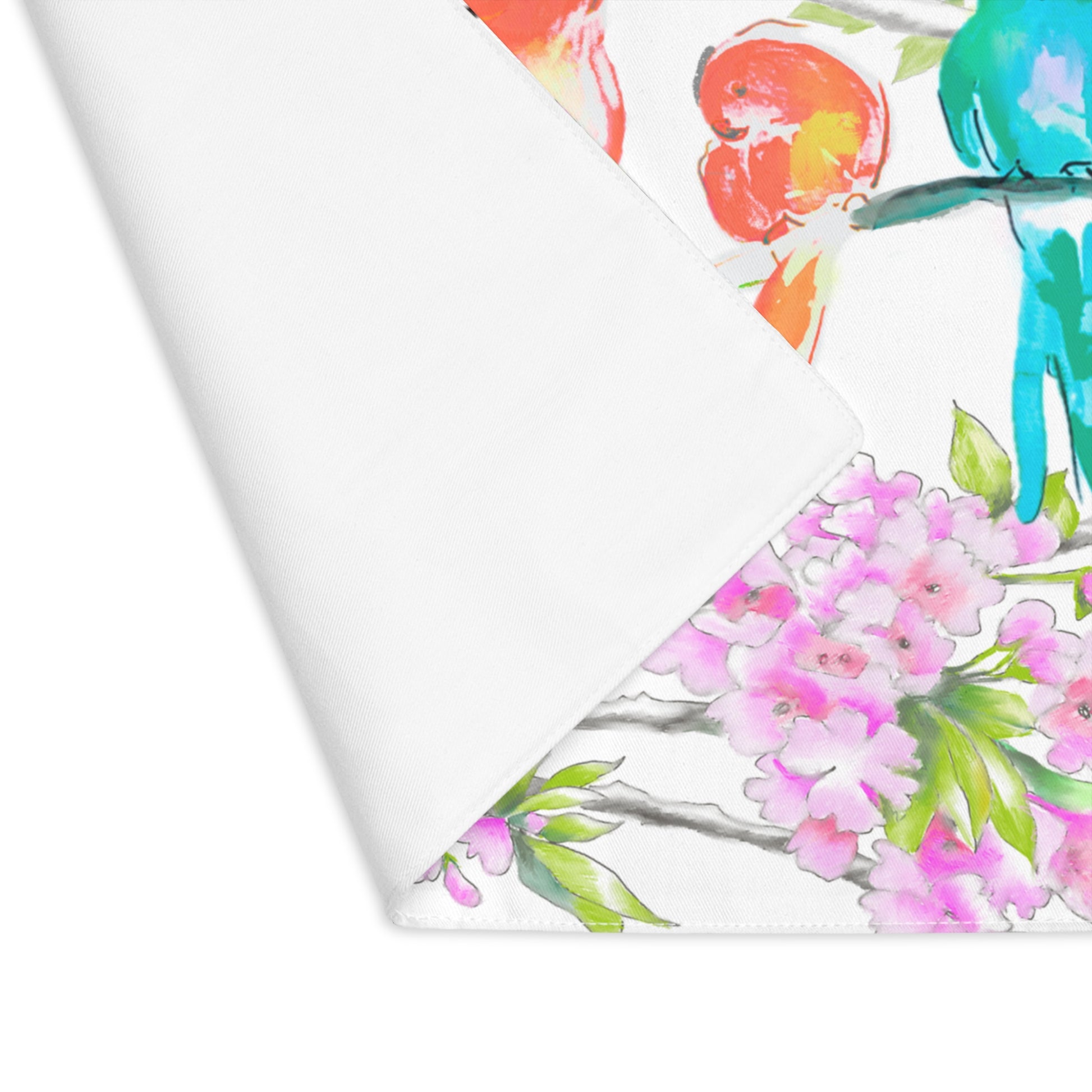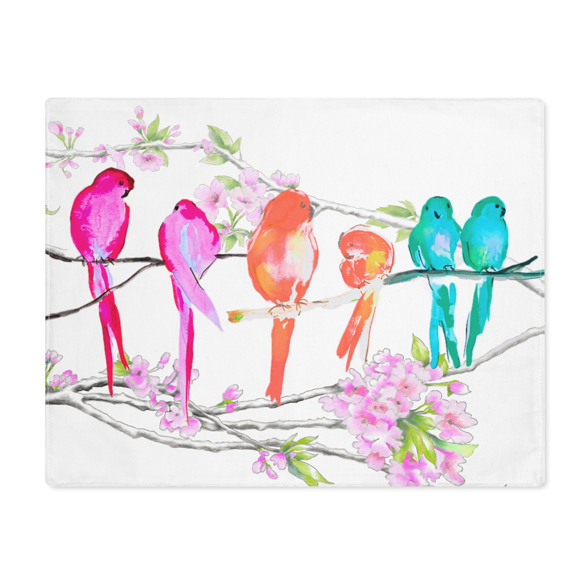 Blossoms & Birds In Pink, Orange, Aqua Placemat, 1pc (18" × 14") cotton (Creamy White)