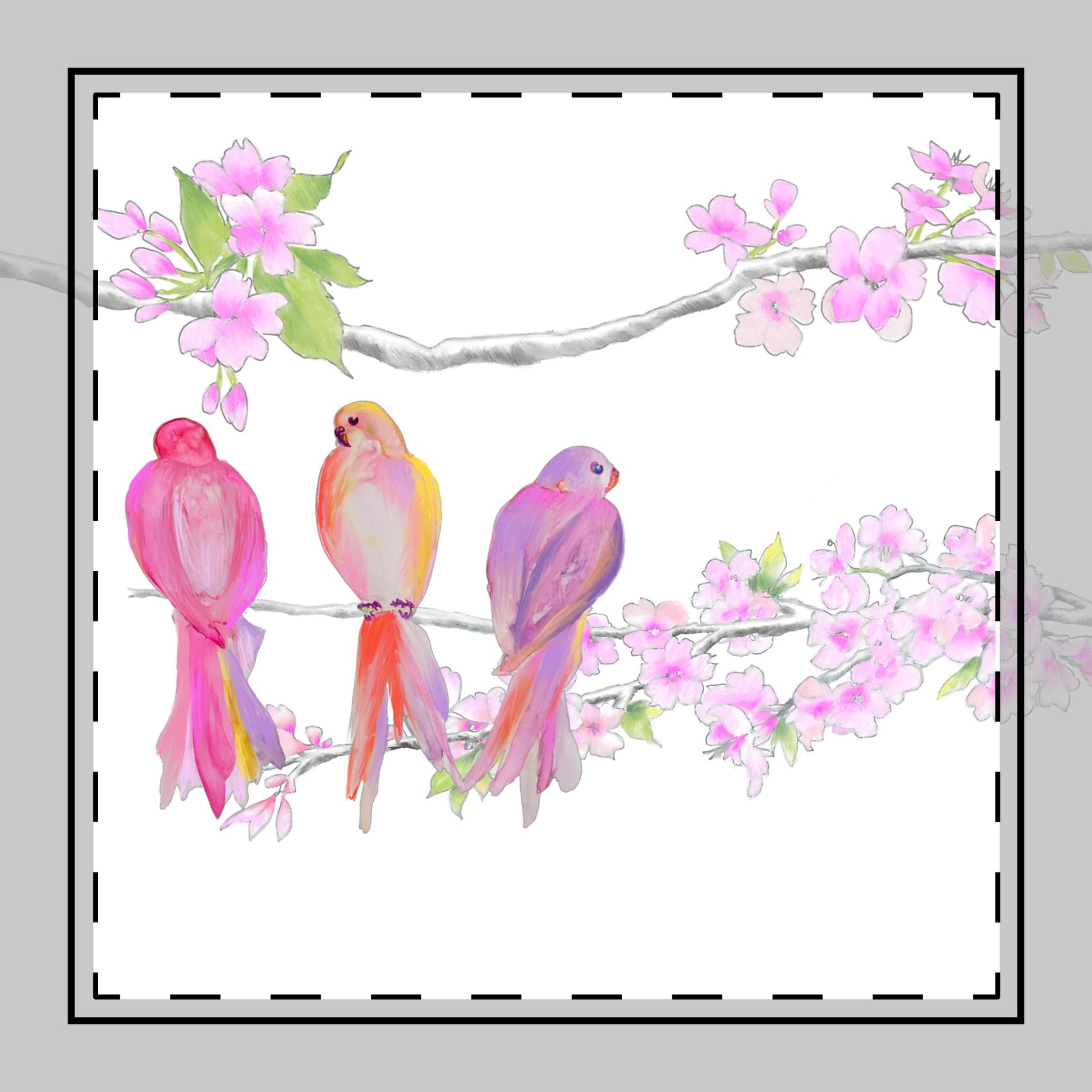 🎨 Hand-Drawn Botanical Beauty – A stunning design inspired by cherry blossoms and birds in song, created by local artists.