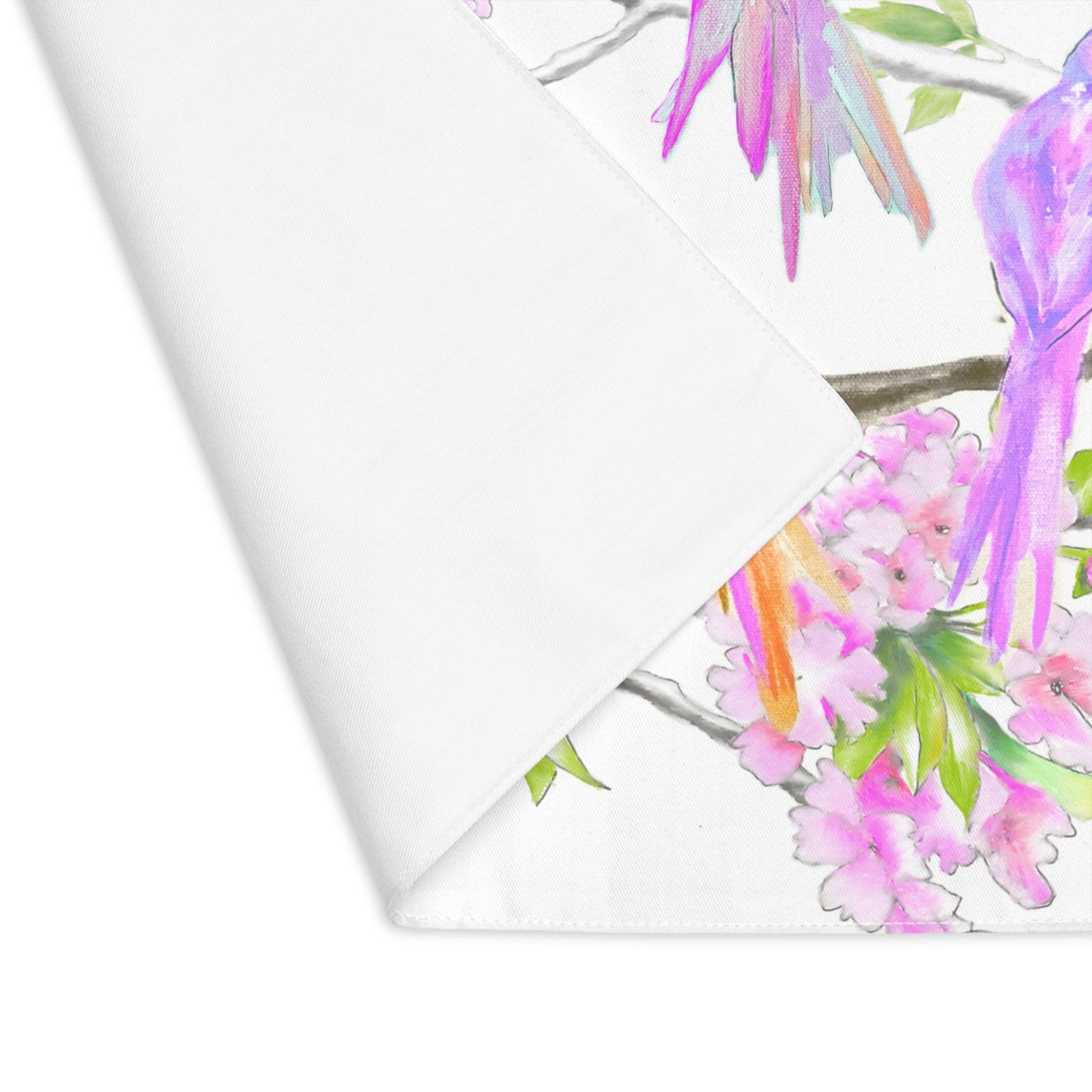 Blossoms & Birds In Pink Placemat, 1pc (18" × 14"), Cotton, Creamy White Background,#1 Head of the table