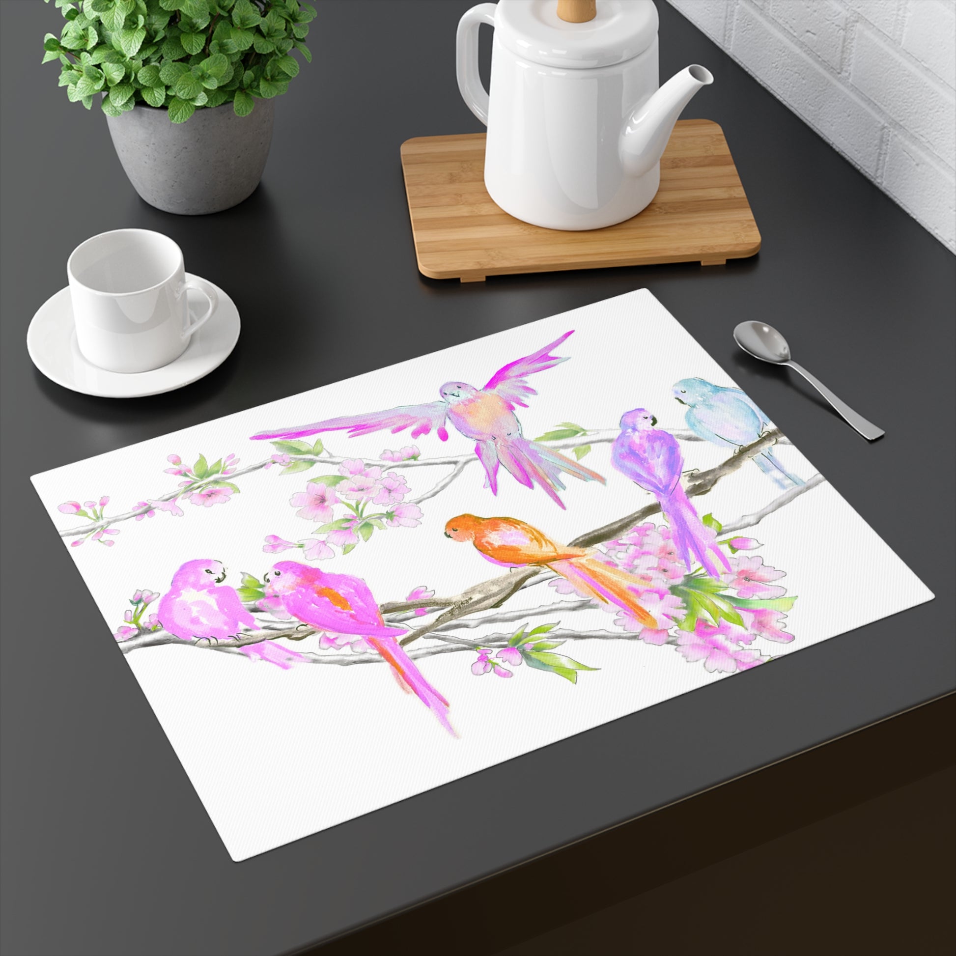 Transform your dining space into a haven of beauty, warmth, and meaningful connection with the Periwinkles Design Tabletop Placemats! Lovingly created to reflect the freshness of the outdoors, these hand-drawn designs feature Fluttering Cherry Blossoms by Diane and Chirping Birds by Luke, bringing a sense of joy, tranquility, and lively energy to your table.