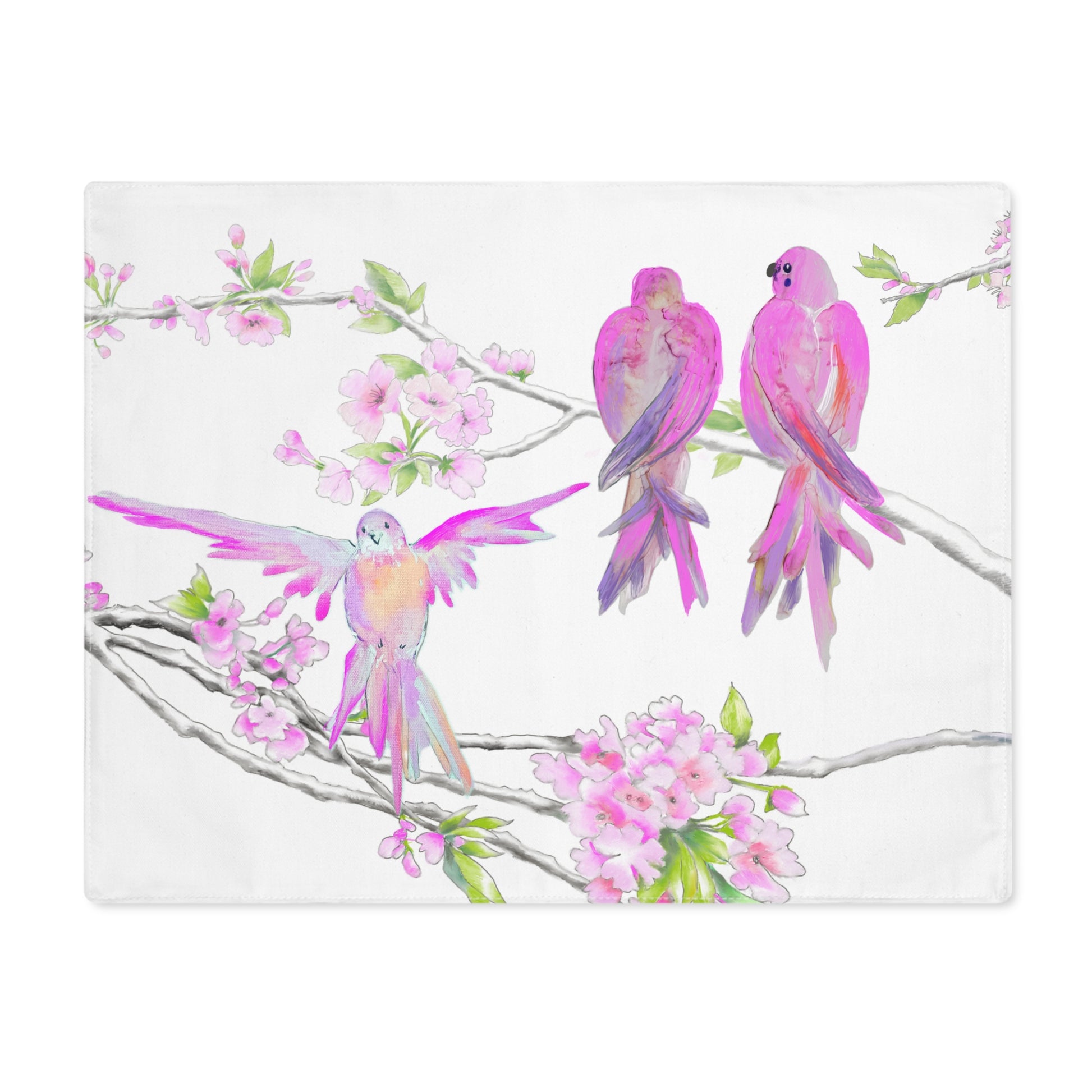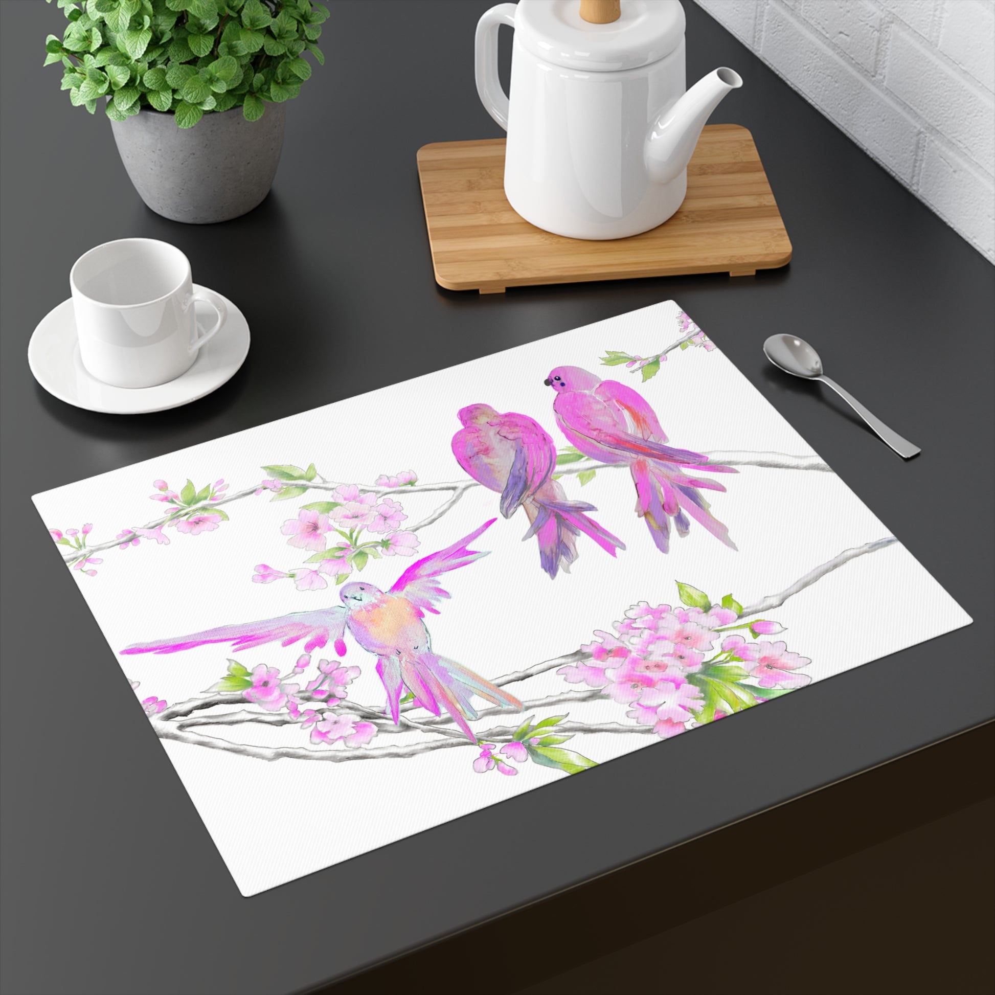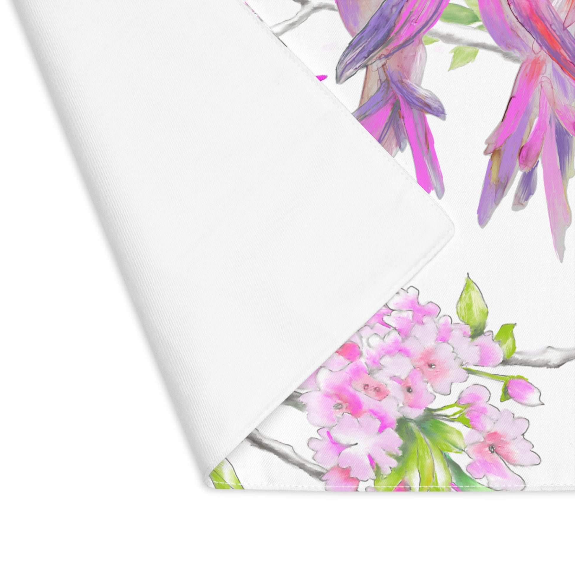 Blossoms & Birds In Pink Placemat, 1pc (18" × 14"), Cotton, Creamy White Background, #5 Right Side of Table