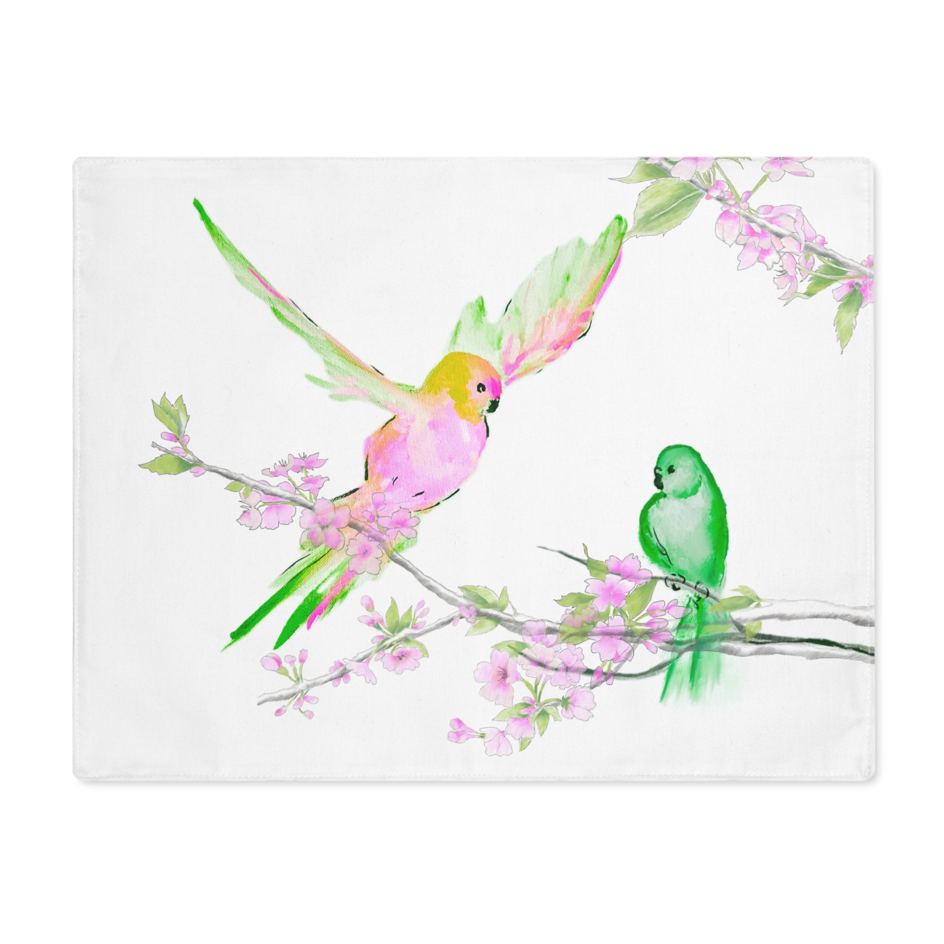 Blossoms & Birds in Pink Placemat, 1pc, Cotton, Creamy Background fabric, #2 Right Side of Table