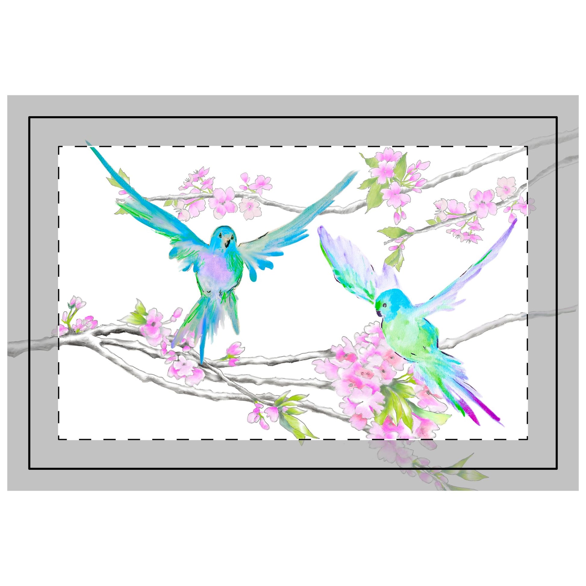 🎨 Hand-Drawn Botanical Beauty – A stunning artistic tribute to cherry blossoms in bloom and birds singing joyfully.