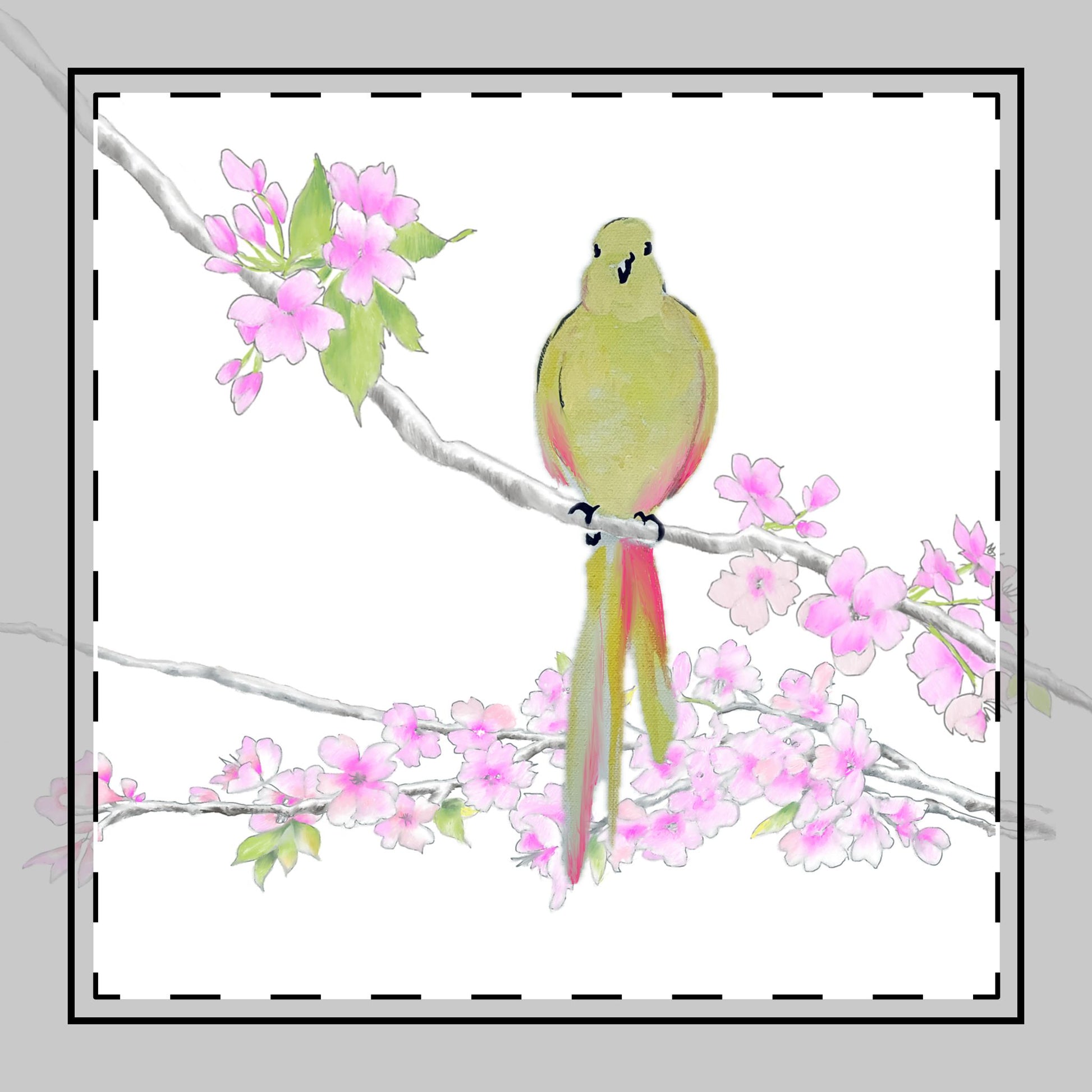 🎨 Hand-Drawn Botanical Beauty – A stunning design inspired by cherry blossoms and birds in song, created by local artists.