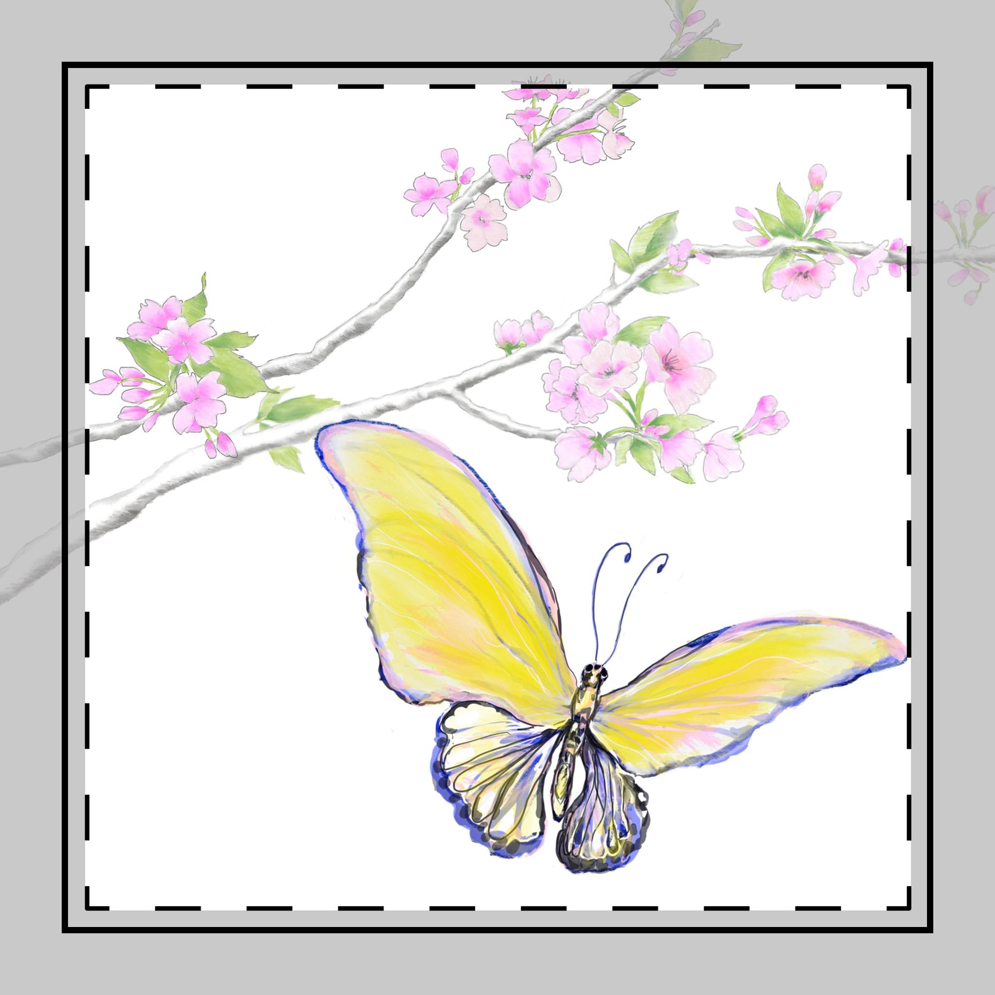Butterfly Blossom Glide Cotton Twill Napkin in Yellow, Creamier White, #8