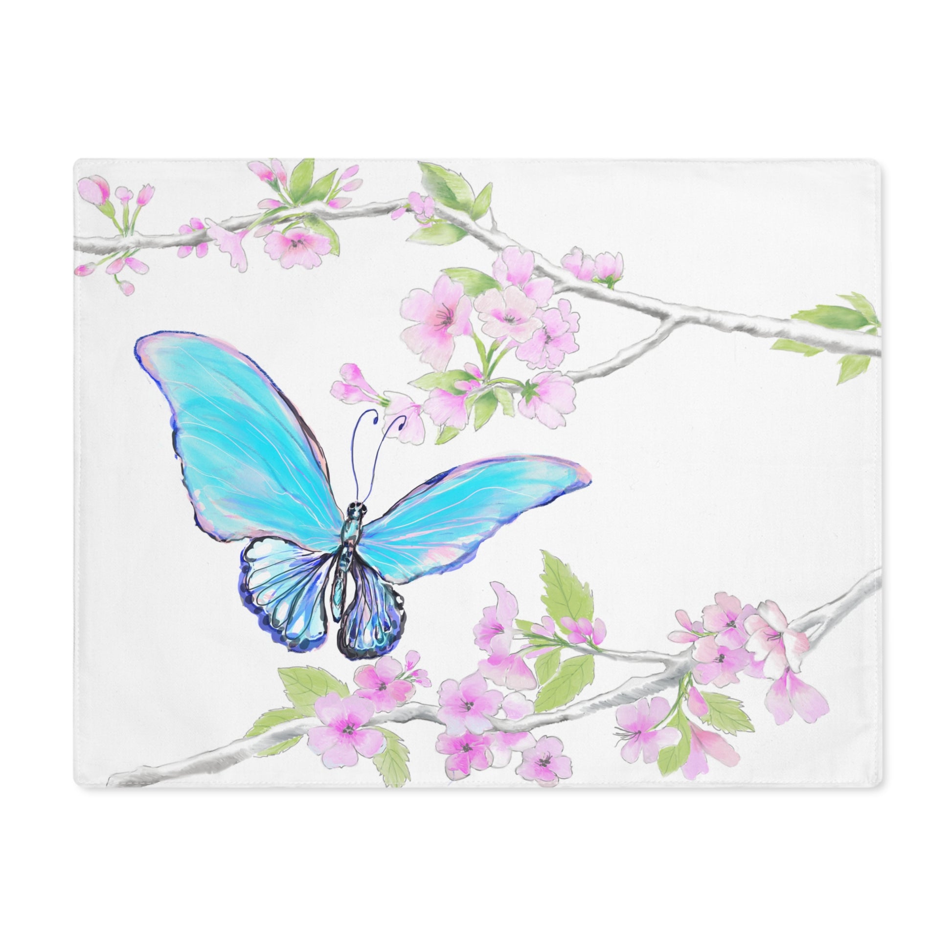 Butterfly Blossom Glide Cotton Twill Placemat, Creamier White, 1pc. Blue, #5