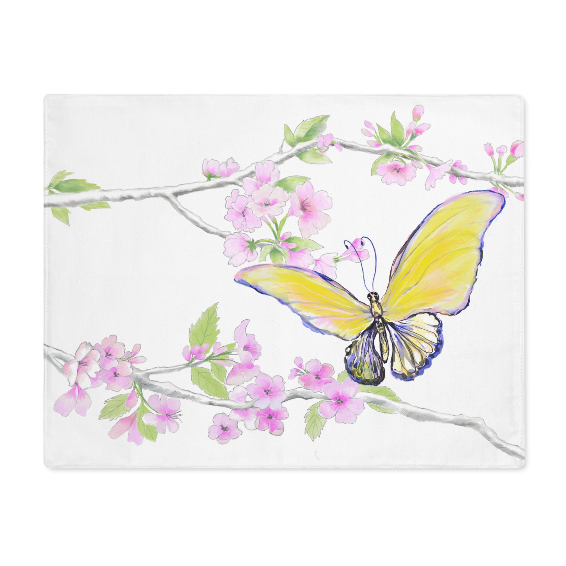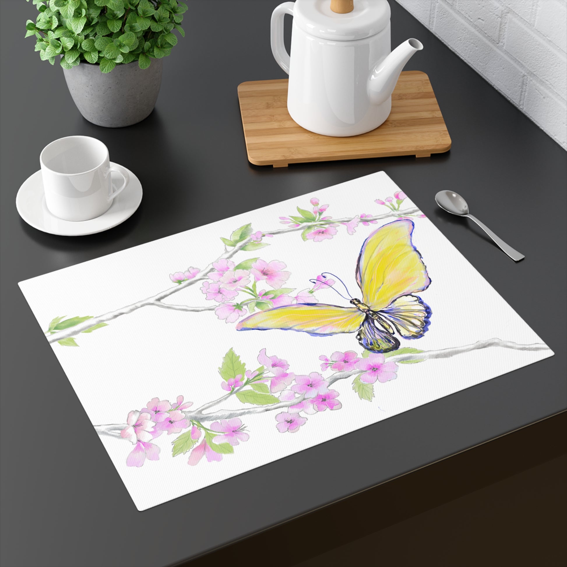 Butterfly Blossom Glide Cotton Twill Placemat, Creamier White, 1pc Yellow, #8
