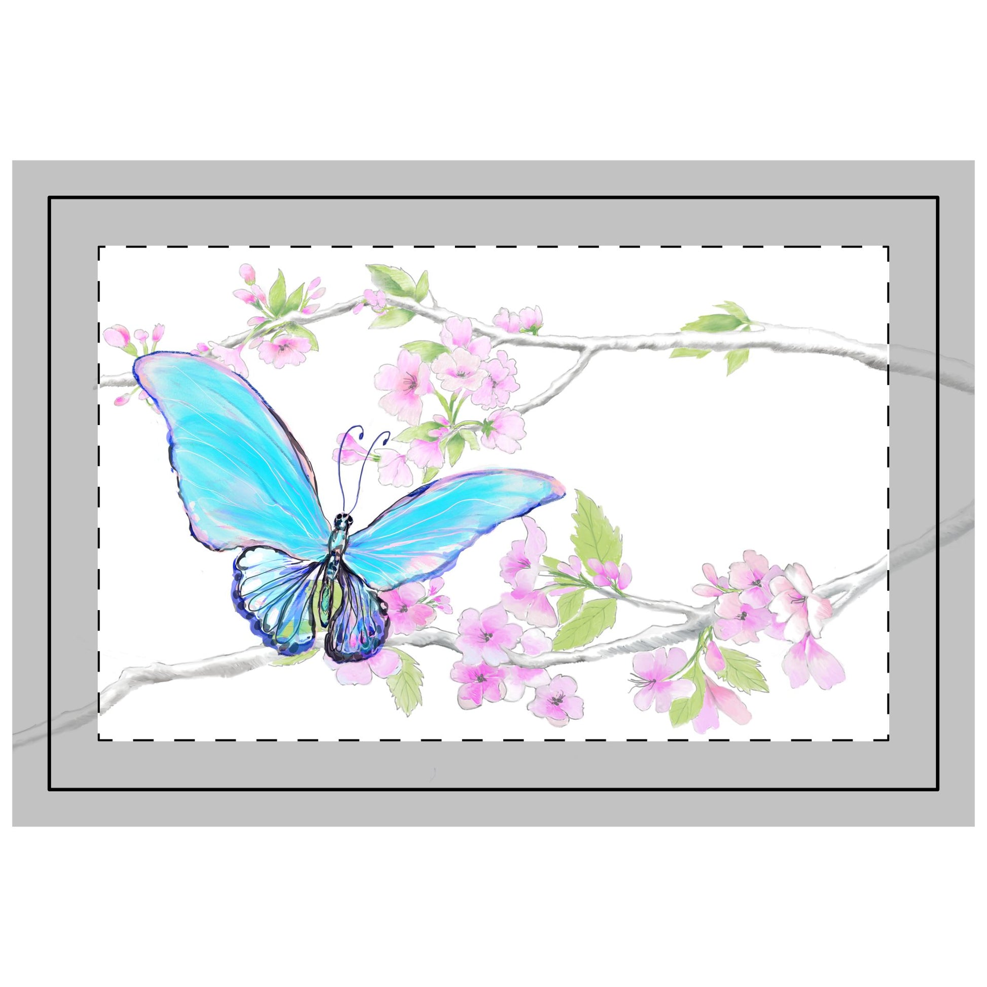 Butterfly Blossom Glide, Quilted Placemat, Polyester, Blue, Background of Fabric Bright White, #5