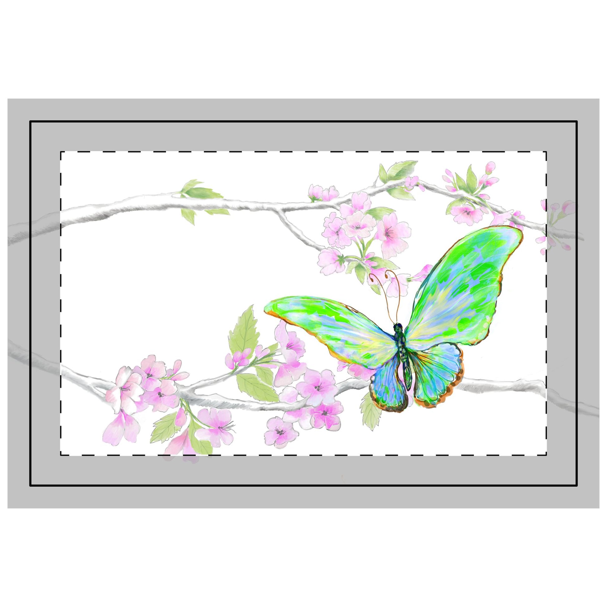 Butterfly Blossom Glide, Quilted Placemat Polyester, Green, Background Fabric Brighter White, #6