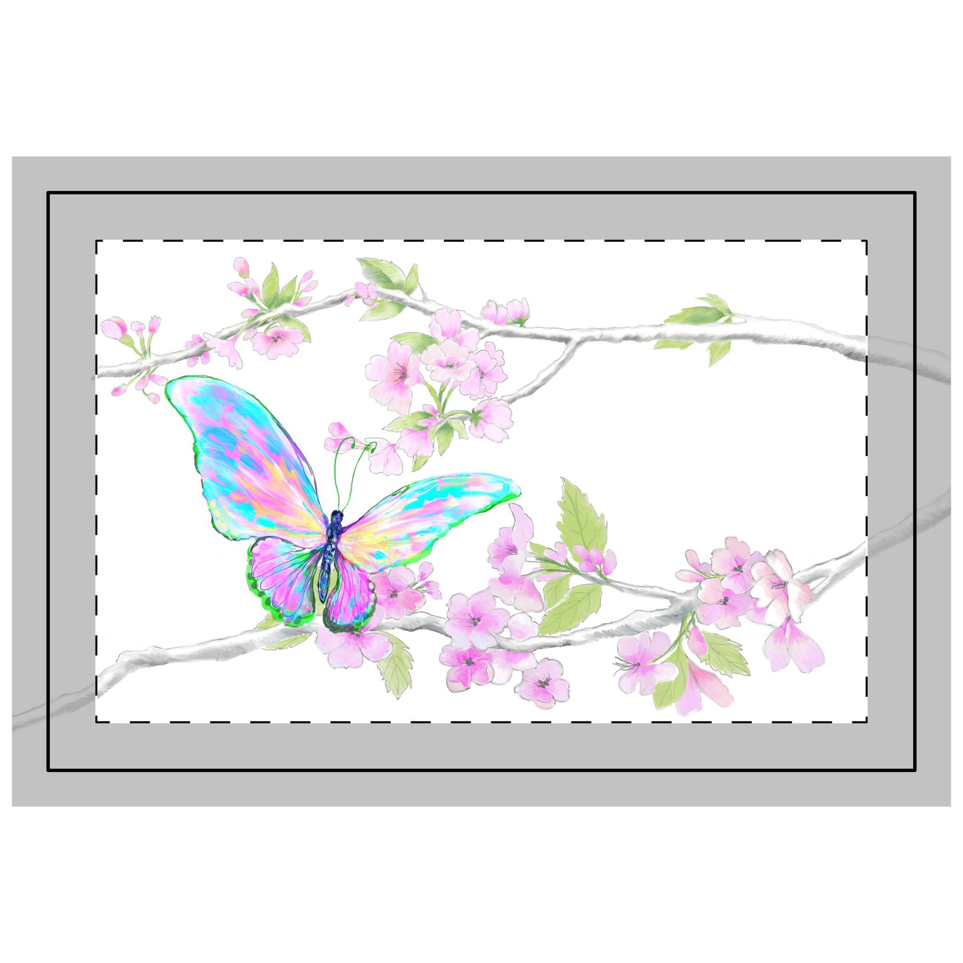 Featuring Diane’s joyful cherry blossoms and Joel’s fluttering butterflies, this design creates a bright, happy atmosphere, evoking the feeling of a sunny outdoor gathering, delicious food, and meaningful conversations shared with loved ones.