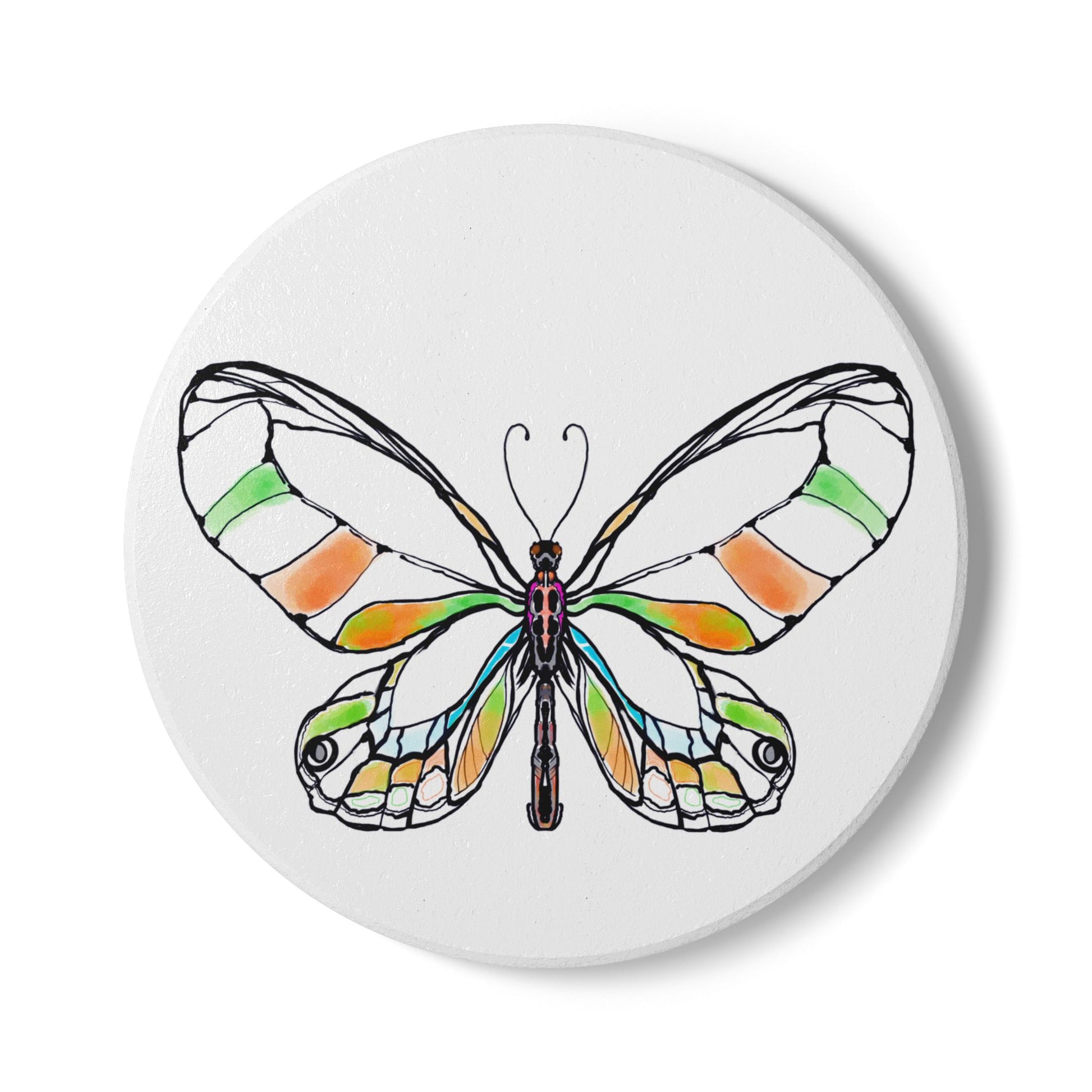 Butterfly Blossom Romp Ceramic Coaster, Multi Color, Orange and Green
