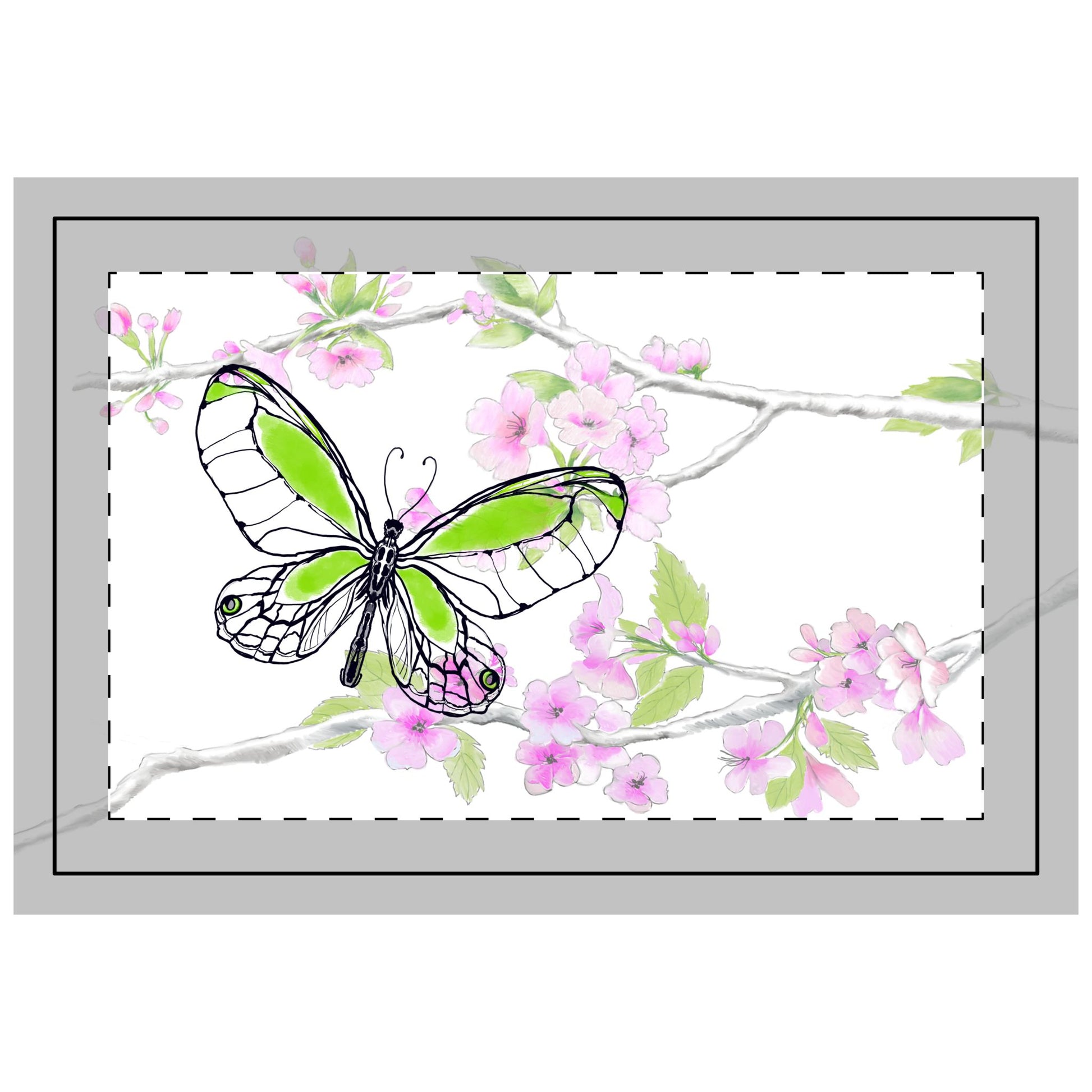Butterfly Blossom Romp Quilted Placemat, Polyester, Green, Fabric Background Bright White, # 7 Left side of table