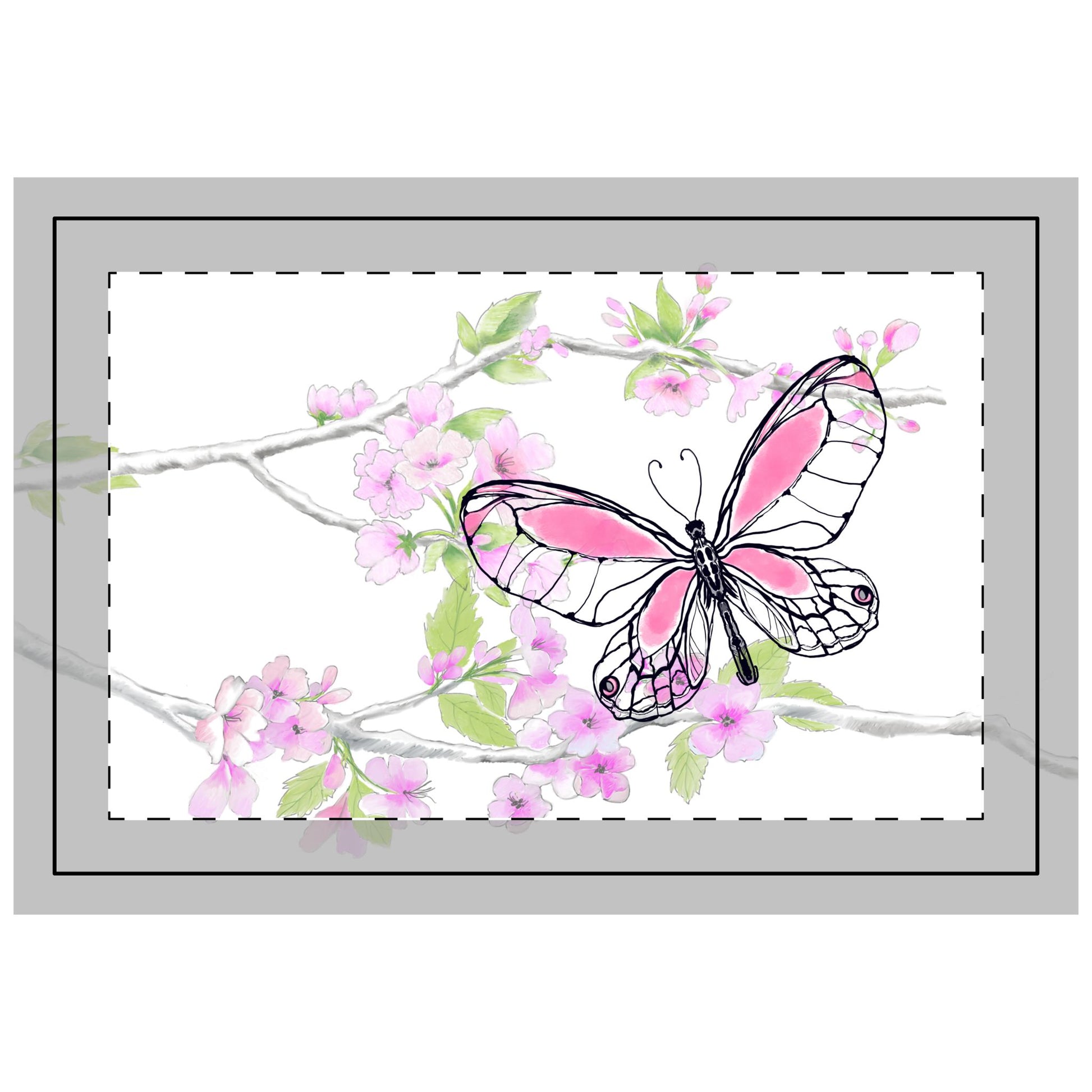 Butterfly Blossom Romp Quilted Placemat, Polyester, Pink, Fabric Background Bright White, #4