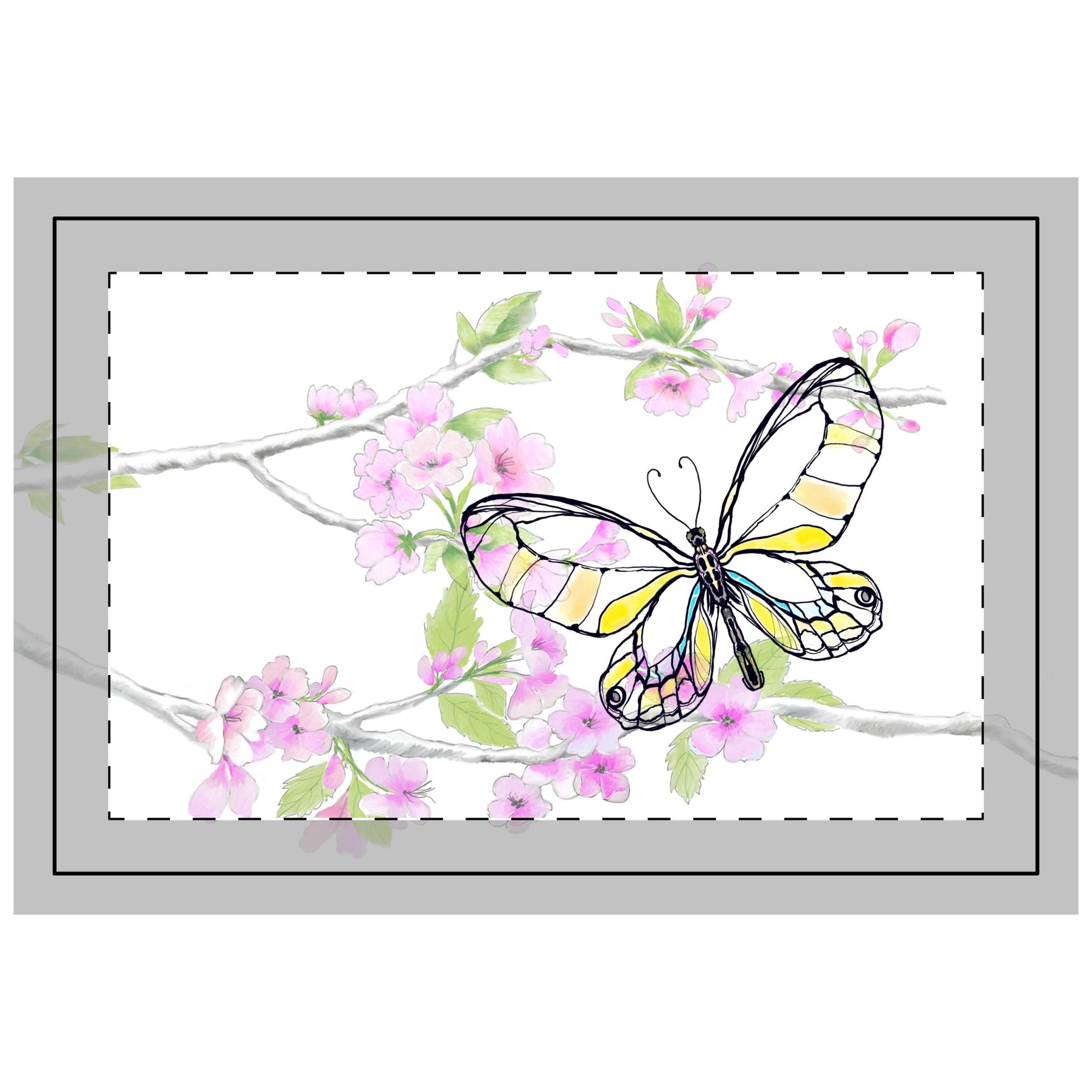 Butterfly Blossom Romp Quilted Placemat Polyester, Yellow, Fabric Background Bright White, #10 Left side of the table
