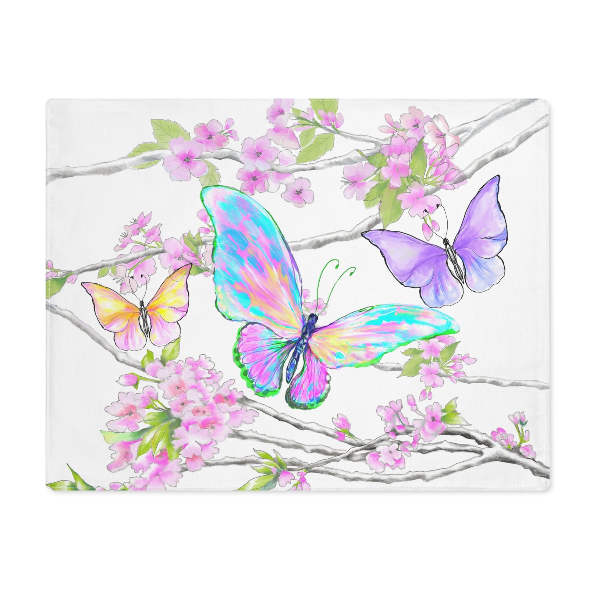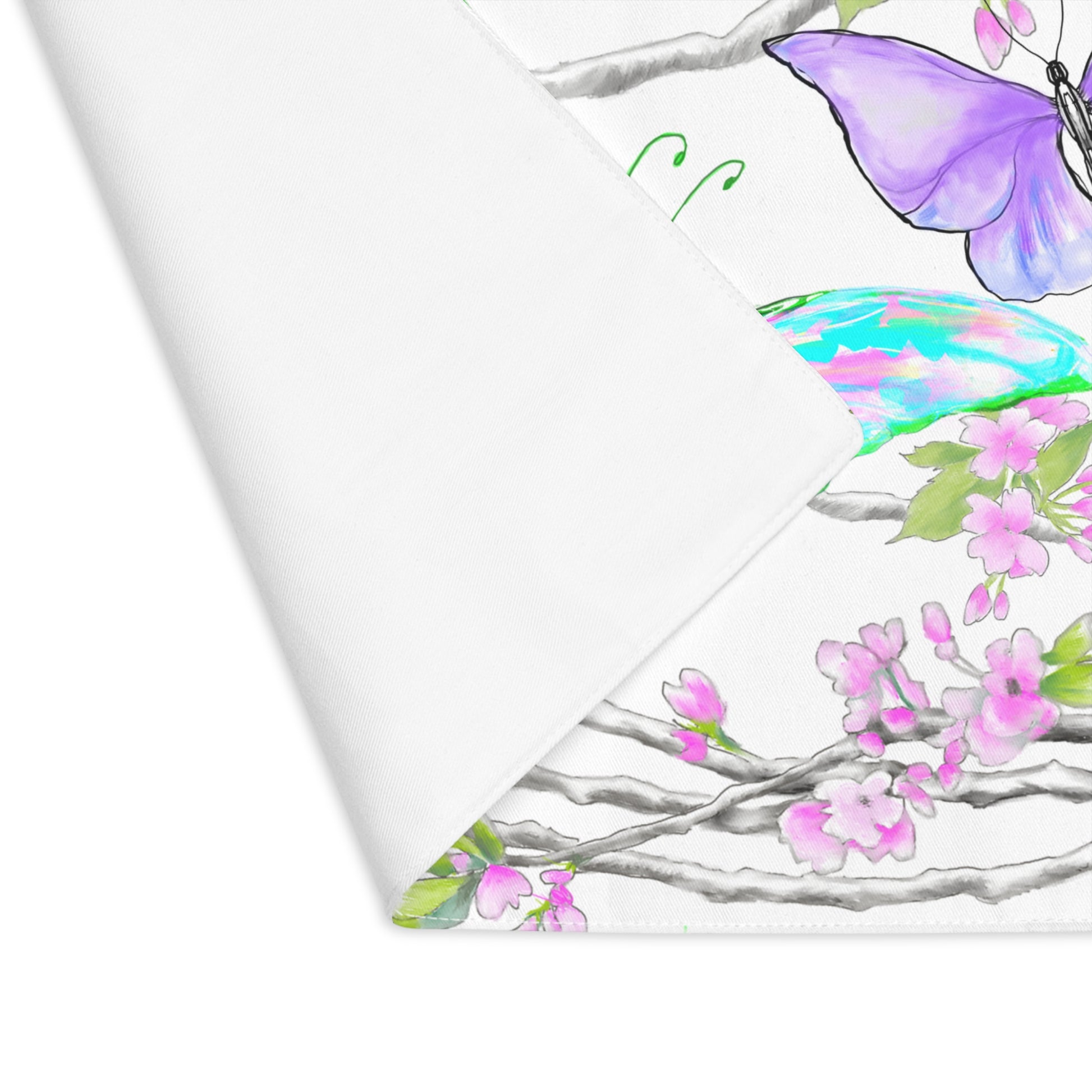 Butterfly Blossom Whirl Cotton Placemat, 1pc Blue, Fabric Background Creamy White, #4