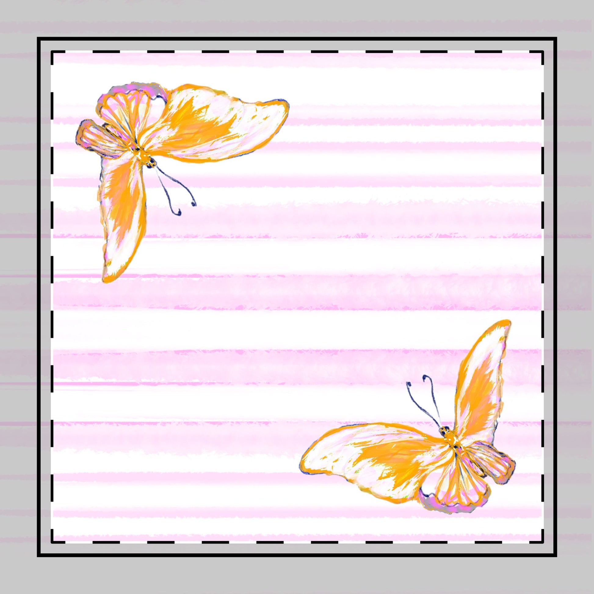Designed for both formal and everyday use, our resilient, fade-resistant, and easy-to-clean cotton napkins bring warmth, color, and creativity to your table. These lovely hand-painted pink stripe napkins with delicate butterflies are a whimsical yet elegant addition to your collection.