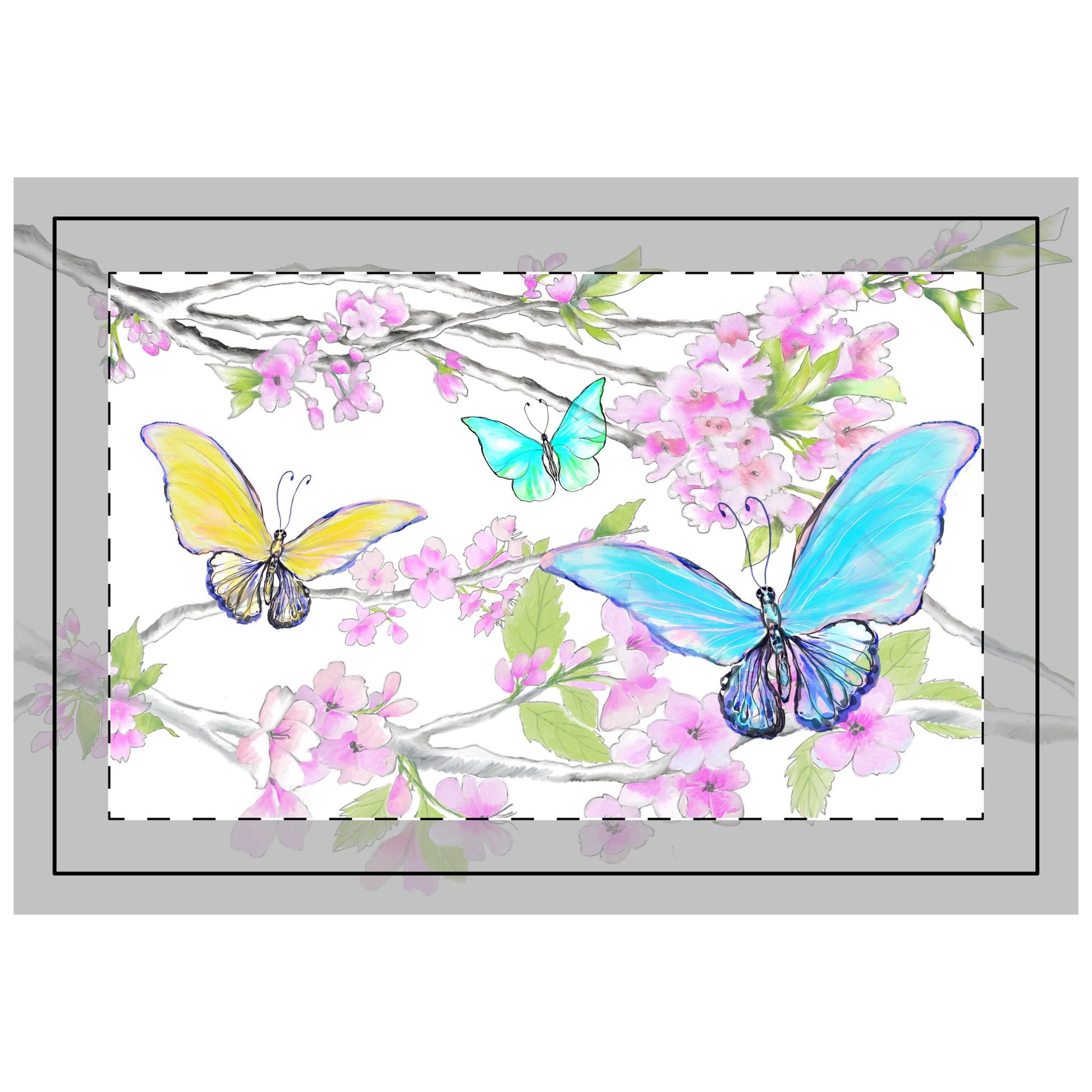 Butterfly Blossom Whirl Quilted Placemat Polyester, Blue, Fabric Background Bright White, #1