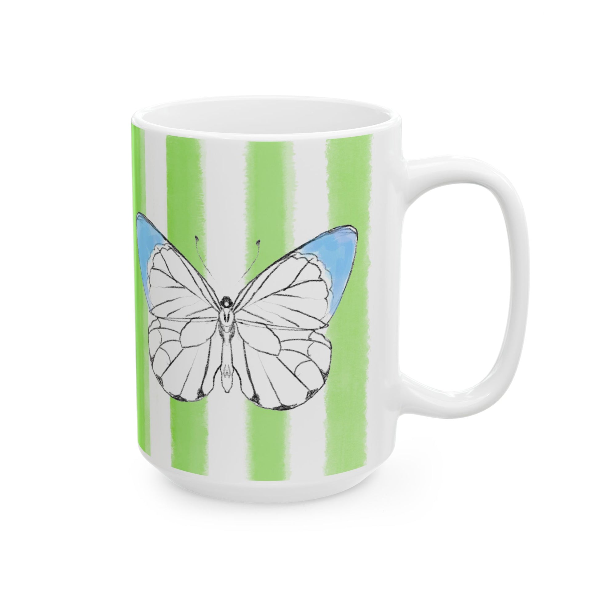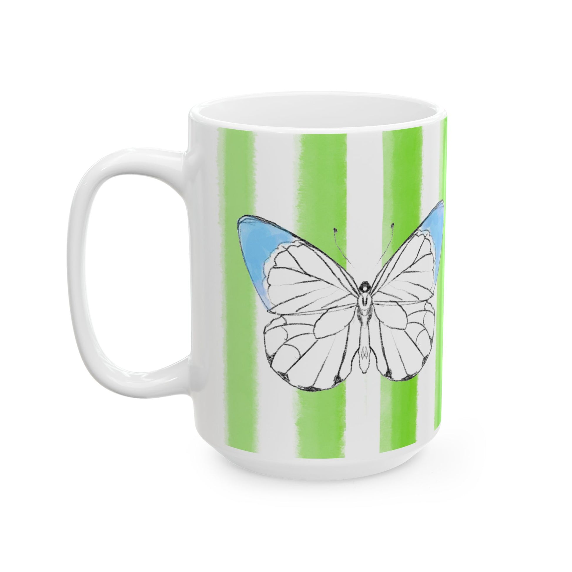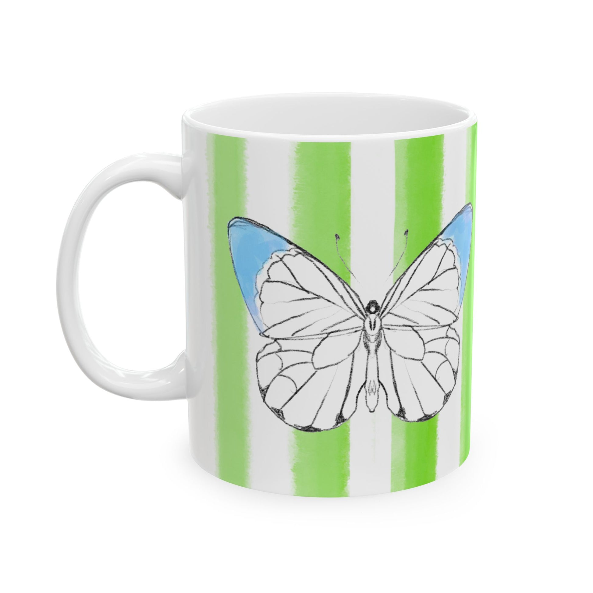 Mugs Butterfly Stripes Flutter in Aqua with Light Green Stripes