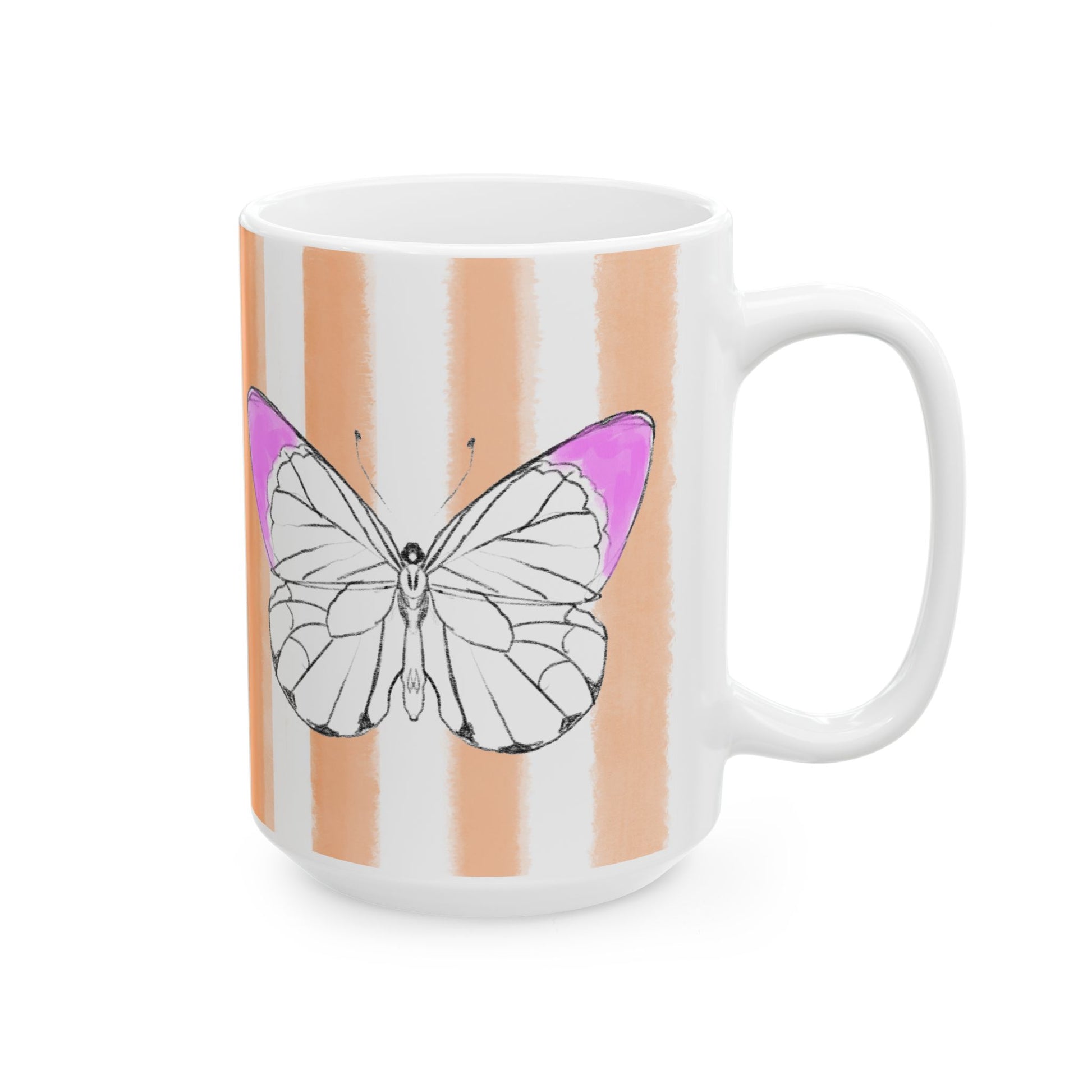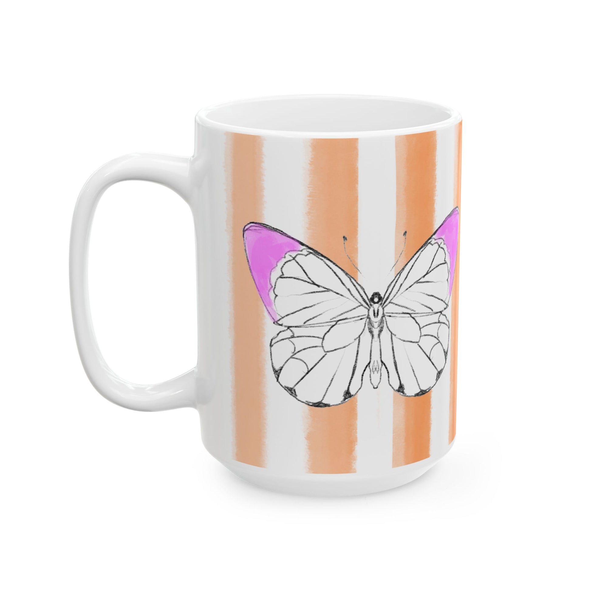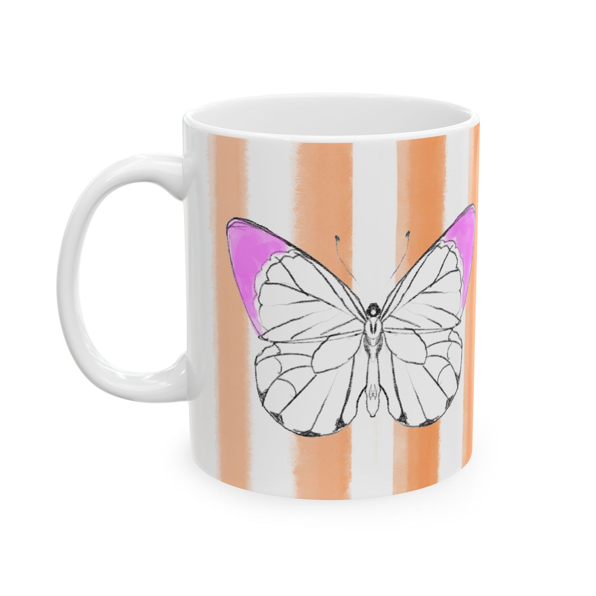 Mugs Butterfly Stripe Flutter in Lavender with Orange Stripes